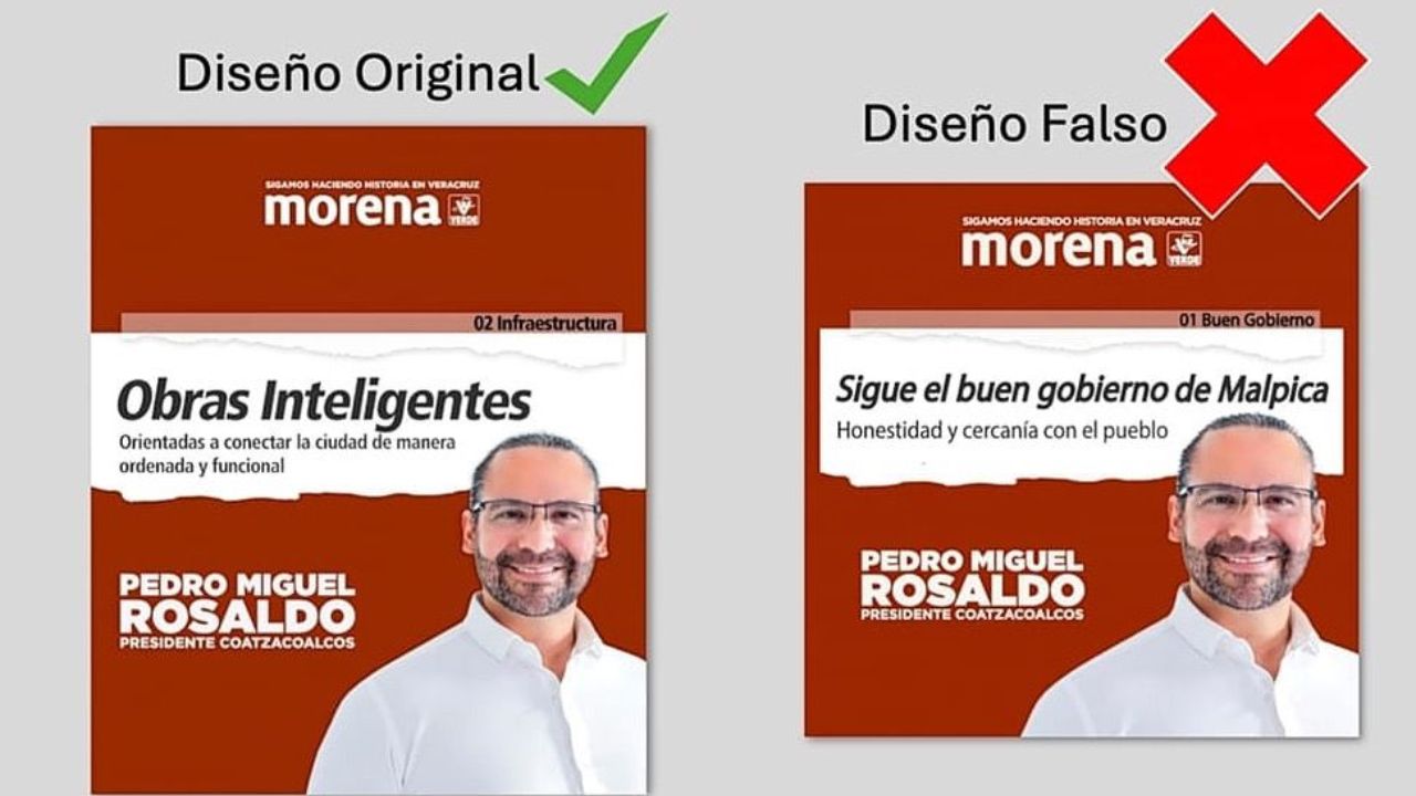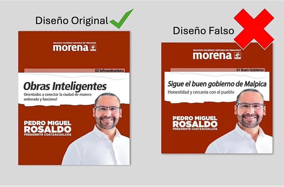 Coatzacoalcos, Ver- La campaña sucia contra el candidato de Morena a la presidencia municipal de Coatzacoalcos, Pedro Miguel Rosaldo García, se manifestó este fin de semana con la circulación, desde el anonimato, de un diseño falso con las características de la imagen oficial y que tenía como objeto confundir a la ciudadanía.