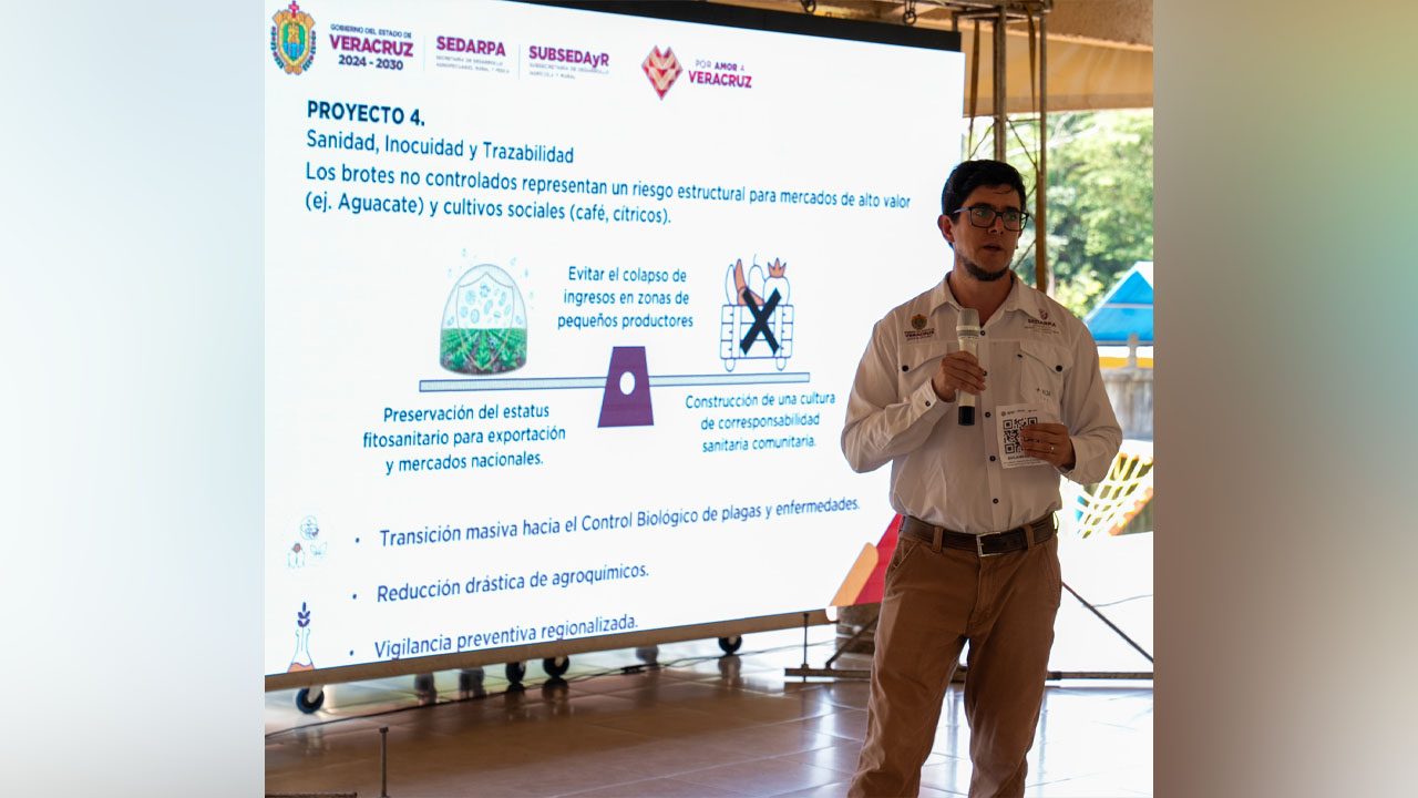 El encuentro fue encabezado por el titular de la Secretaría de Desarrollo Agropecuario, Rural y Pesca, Rodrigo Calderón Salas, quien presentó los lineamientos y alcances de este programa impulsado por el Gobierno del Estado de Veracruz para fortalecer el desarrollo del campo.
