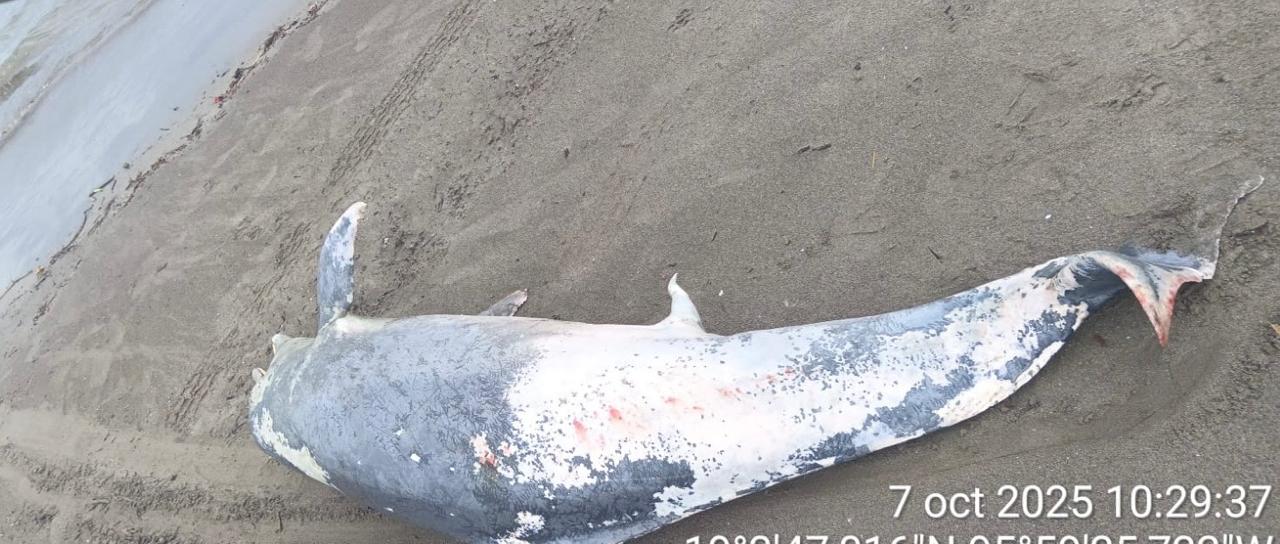 El cuerpo del mamífero marino se encontraba ya en estado de descomposición. Se desconocen las causas de su muerte.