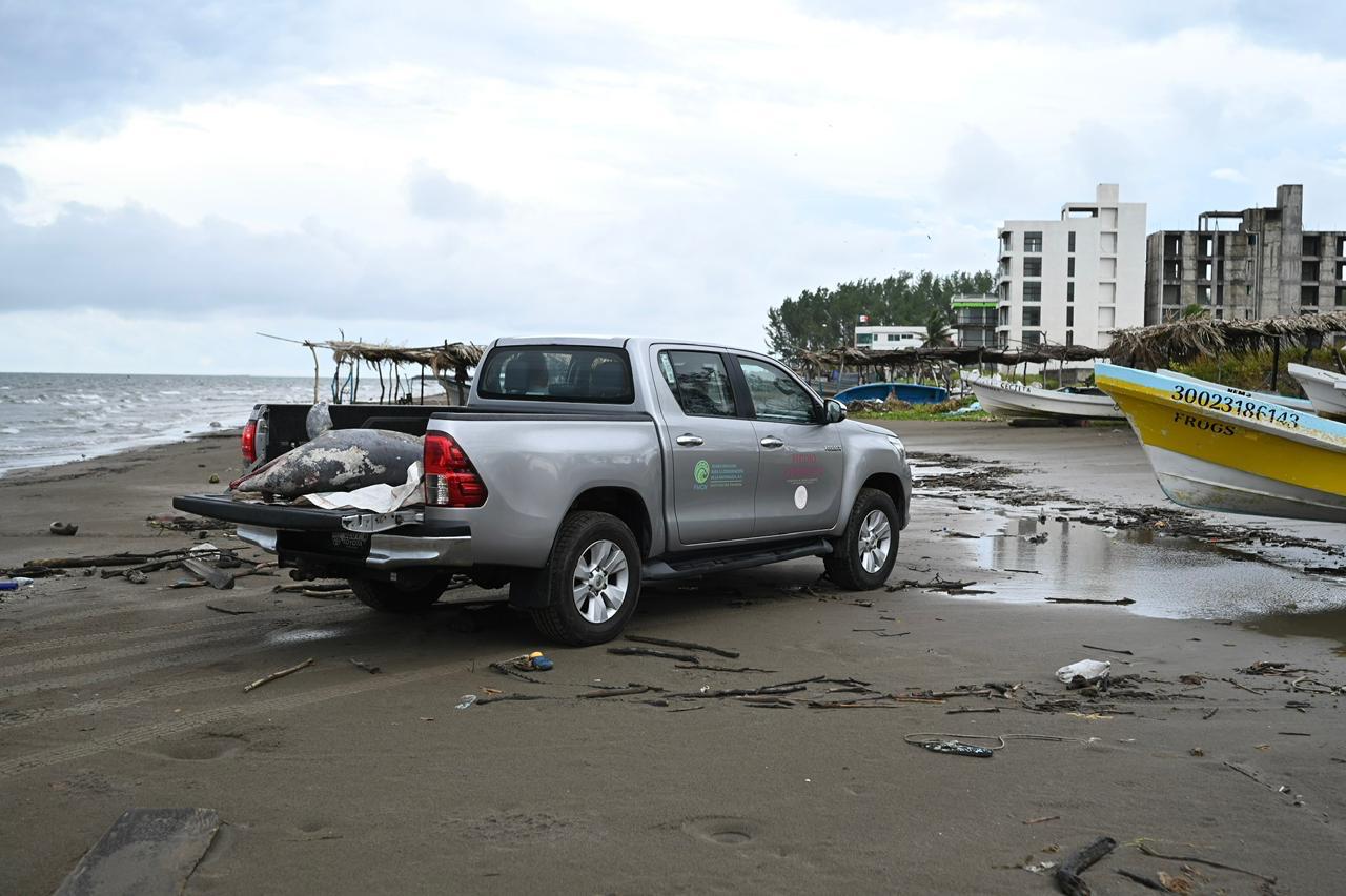 Personal del Fondo Mexicano para la Conservación de la Naturaleza llegó, tomó medidas del animal, levantó el cuerpo del delfín y en un vehículo del organismo se lo llevó para realizar estudios que permitan conocer las causas de la muerte.