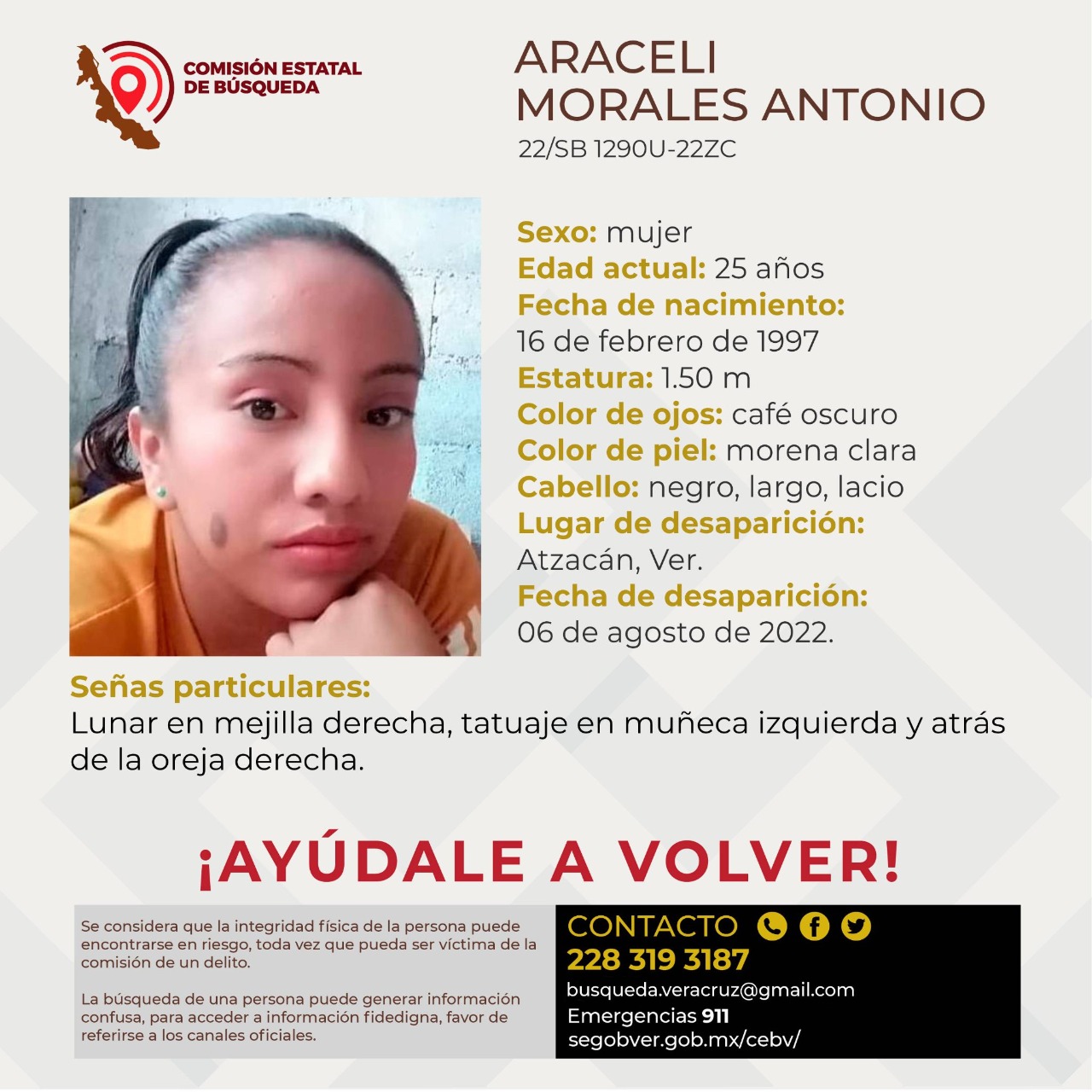 Araceli había sido privada de la libertad el 6 de agosto y anoche fue hallada sin vida con muestras de violencia a 200 metros de la carretera principal de la comunidad Rincón Grande, municipio de Atzacan.