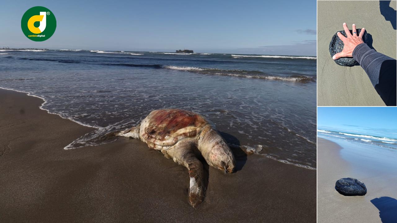 Hallan tortuga muerta en playa de Boca del Río; y manchas de crudo