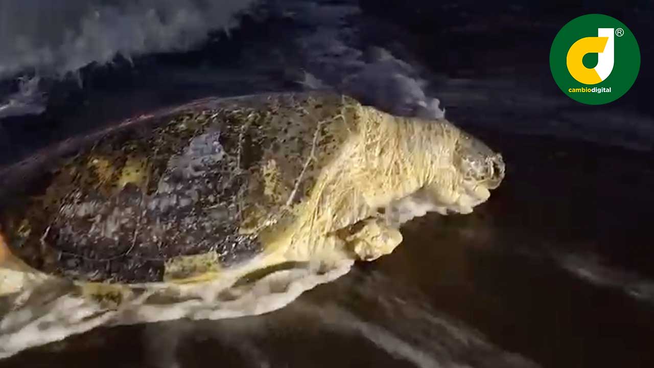 Ricardo Yepez, de la Fundación Tortugas Yépez, reportó la localización del ejemplar de más de metro y medio de largo.