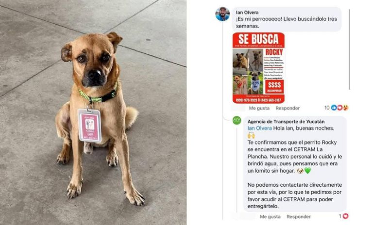 “Te confirmamos que el perrito Rocky se encuentra en el CETRAM La Plancha. Nuestro personal lo cuidó y le brindó agua, pues pensamos que era un lomito sin hogar. No podemos contactarte directamente por esta vía, por lo que te pedimos por favor acudir al CETRAM para poder entregártelo” contestó la ATY cuando Ian lo reclamo como aparte de su familia.