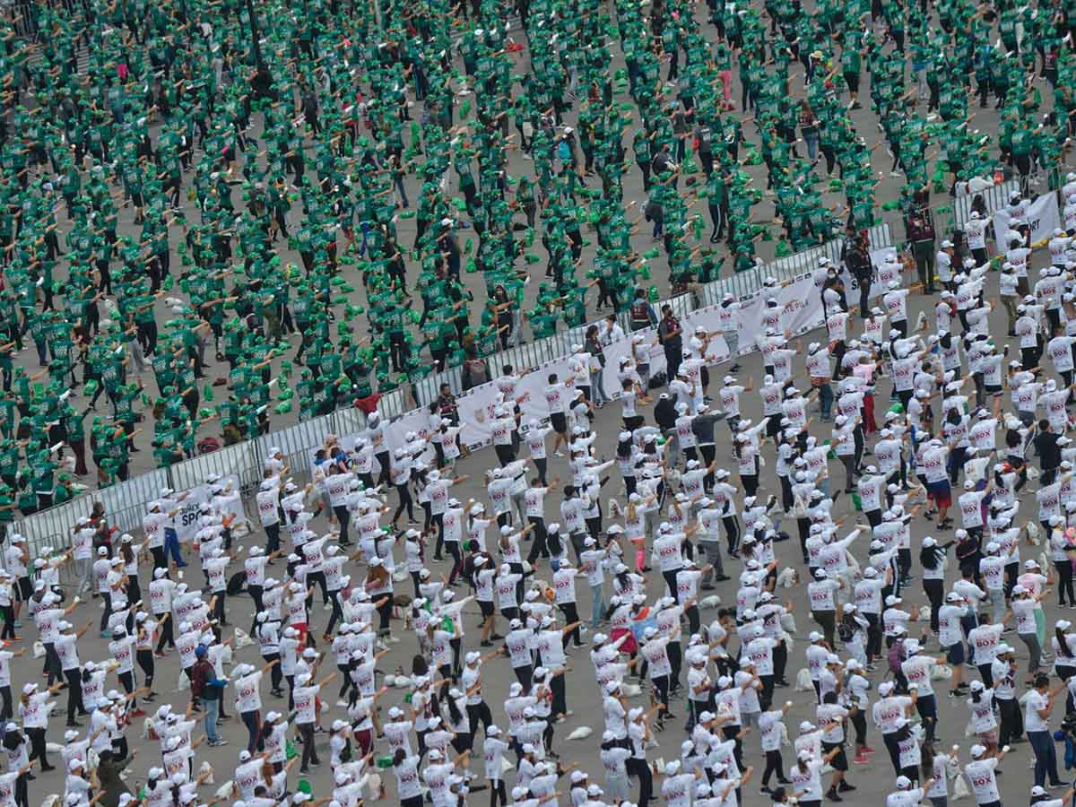 Para comenzar la Clase Masiva de Box se realizaron: rotaciones de cabeza, voladitos, uppercuts, simulación de saltar la cuerda, japs, sentadillas, movimientos de cintura, entre otros movimientos.