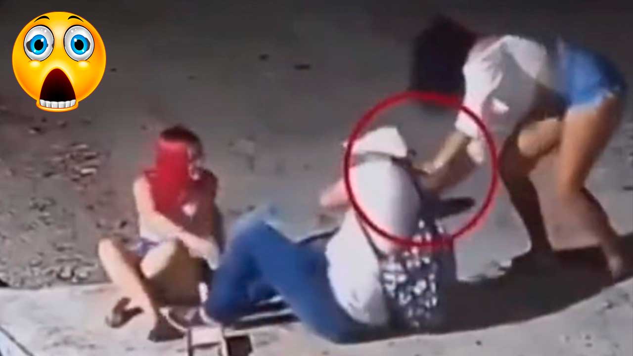 El hecho fue grabado gracias a una cámara de seguridad, la cual captó el incidente en el que se aprecia cómo dos mujeres van caminando por la noche sobre la calle aparentemente con unas copitas de más.