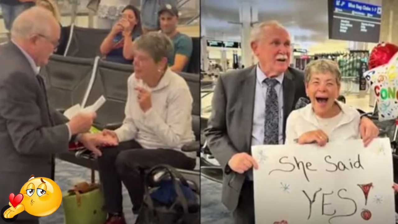 Gambell, quien estaba sentada en una de las bancas del aeropuerto, inmediatamente dio el “sí” y ambos se abrazaron; mientras los viajeros del lugar celebraron el compromiso aplaudiéndoles.