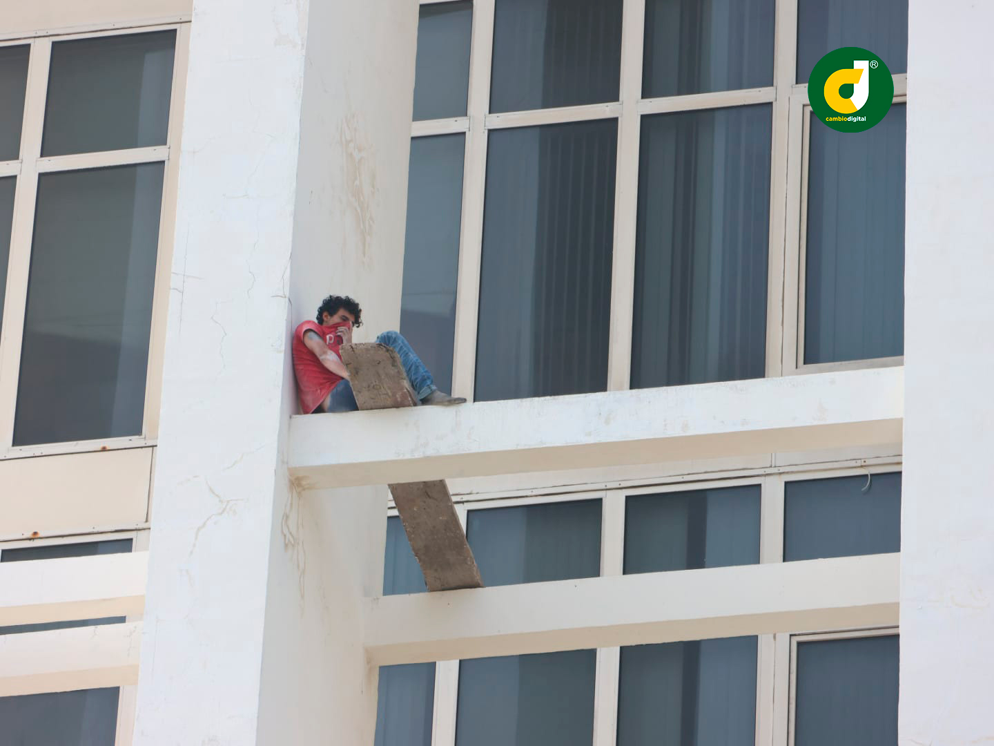 “El muchacho hablaba de personas dentro del edificio que le quieran hacer daño y bueno era muy arriesgado hacer algo por él, ustedes vieron donde se encontraba y lo que se hizo fue convencerlo que se introdujera al edificio y bueno esperemos que se le pase el efecto de lo que haya inhalado, creo yo algún tipo de solvente y pueda bajar por sus propios medios”.