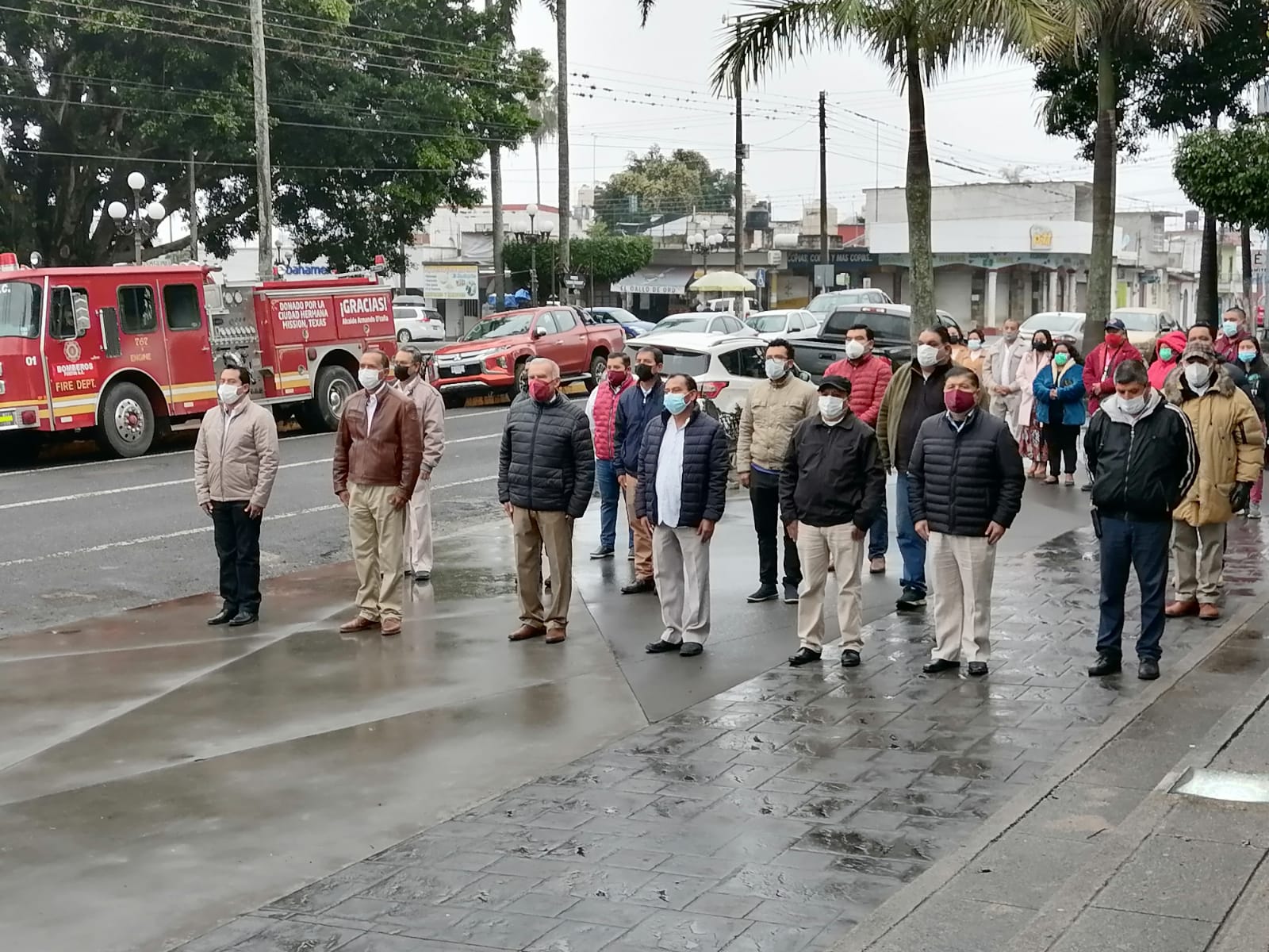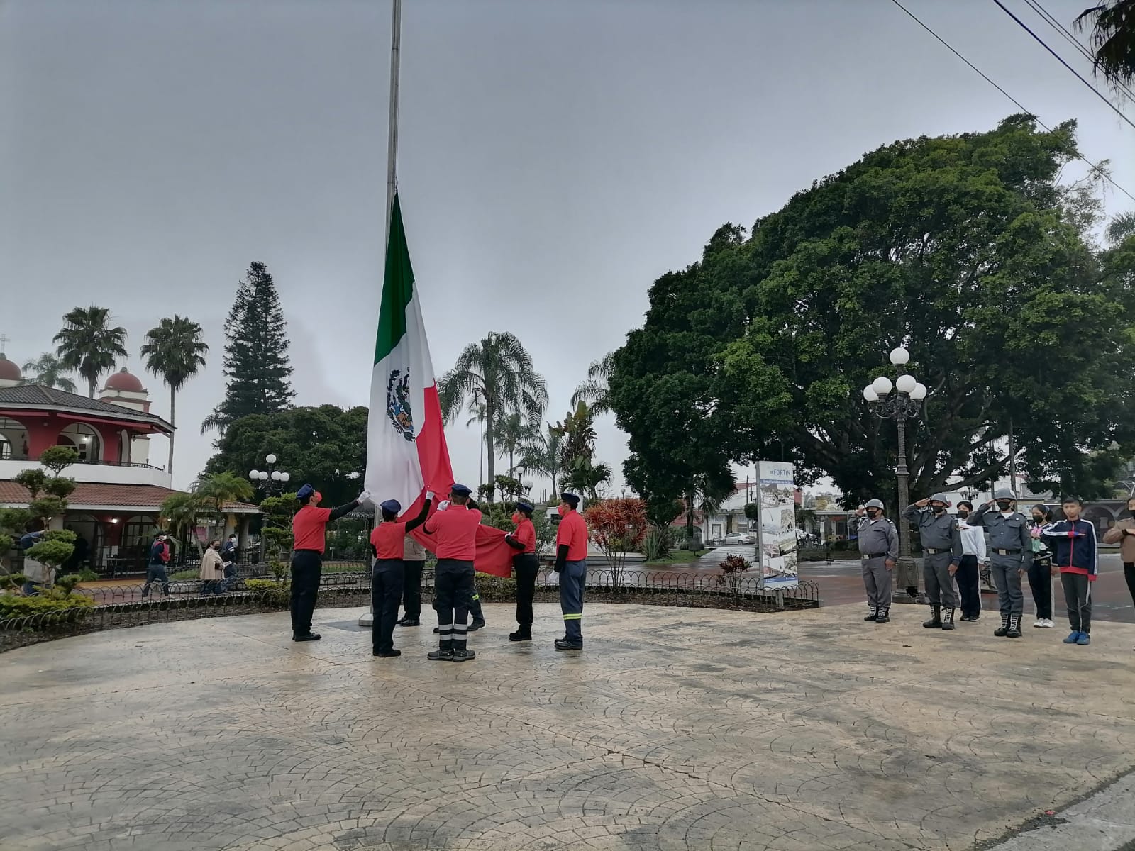 El cuerpo de Bomberos Fortín AC estuvo a cargo de los honores a la bandera, izamiento y arrio del lábaro patrio debido a las condiciones climáticas.