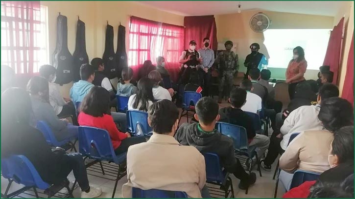Los planteamientos logrados al final de la plática fueron: activar un buzón de quejas escolares, llamar a números de emergencia para atender de forma inmediata cualquier eventualidad y el acercamiento de los estudiantes con las autoridades policiacas.