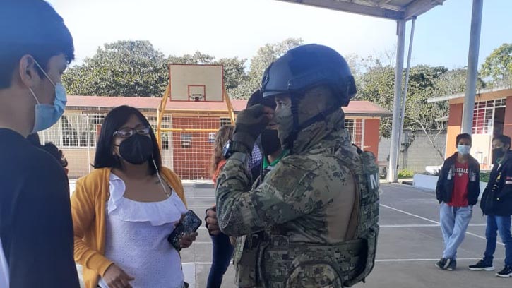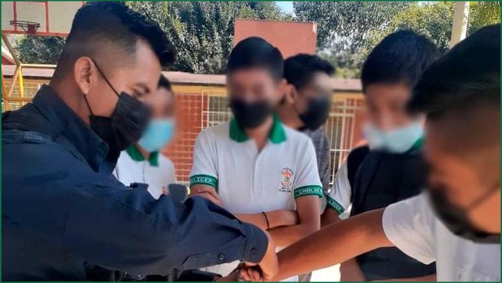 Córdoba, Ver.- Elementos de la Policía Municipal en coordinación con efectivos de la Secretaría de Marina (SEMAR) impartieron pláticas sobre: "Prevención del delito y Bullying" a alumnos de la telesecundaria "Carlos Pellicer" de la comunidad El Barreal y de la Escuela Secundaria General 3, a la petición de las autoridades educativas con el fin de concientizar a los estudiantes.