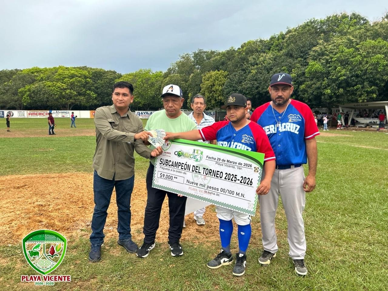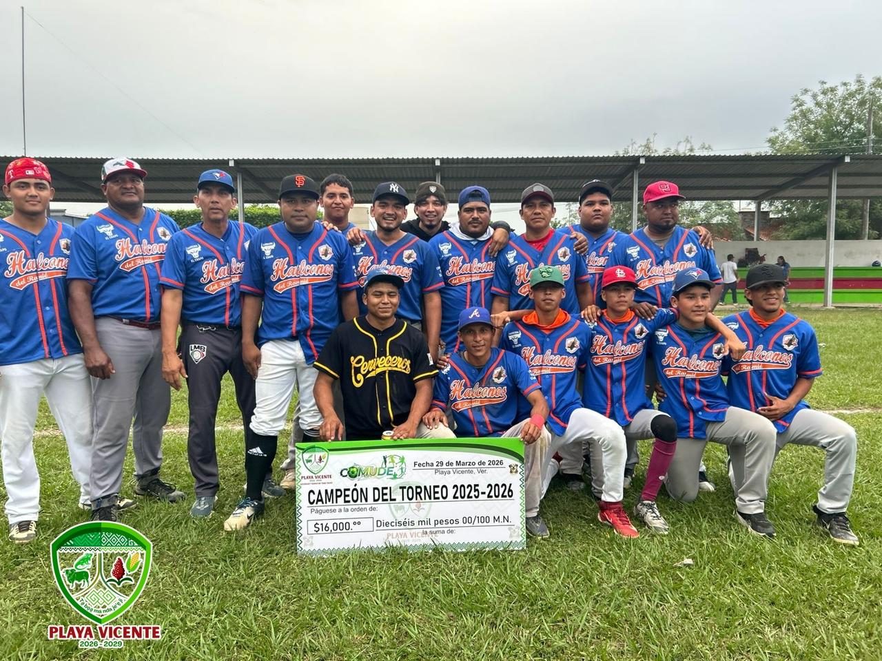 Playa Vicente, Ver.- En un emocionante encuentro deportivo, el equipo Halcones del Ramie se proclamó campeón de la temporada 2026 tras vencer 16 carreras por 6 a los Broncos de la Peña, en un partido que se desarrolló en un ambiente de cordialidad y entusiasmo.