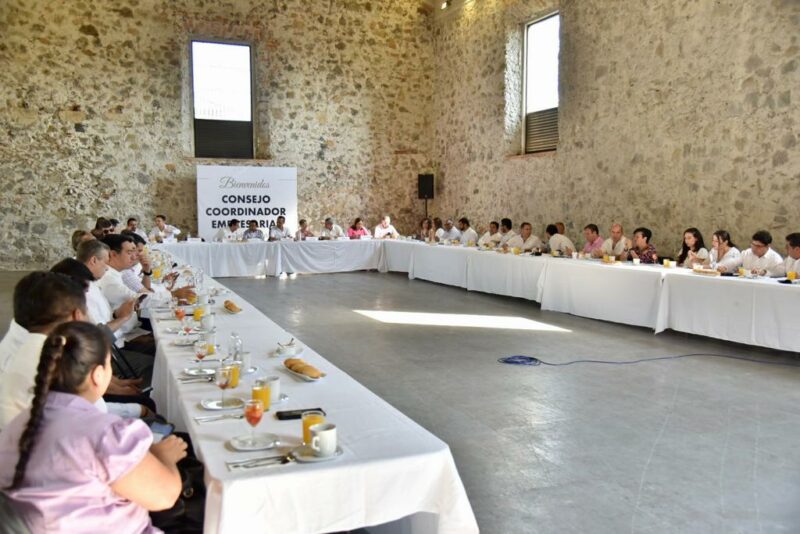 Durante esta primera reunión en la Ex-Hacienda San Francisco Toxpan, estuvieron presentes los presidentes del Consejo Coordinador Empresarial (CCE), Cámara Nacional del Comercio (Canaco), Canacintra y sus agremiados de Córdoba y Orizaba.