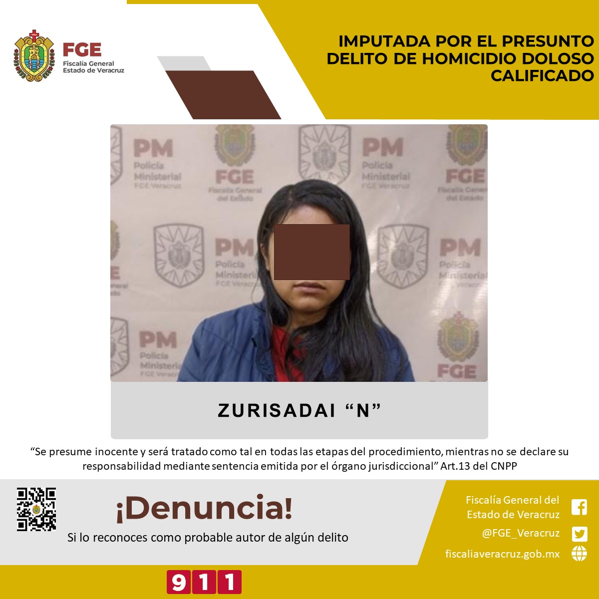 La Fiscalía Regional Xalapa informó que “imputó a Zurisadai “N” por el presunto delito de homicidio doloso calificado cometido en agravio de la víctima menor de edad quien era su hijo y en vida se identificaba con las iniciales L. L. M. R., hechos suscitados en la colonia Nacional el pasado 27 del presente mes y año”.
