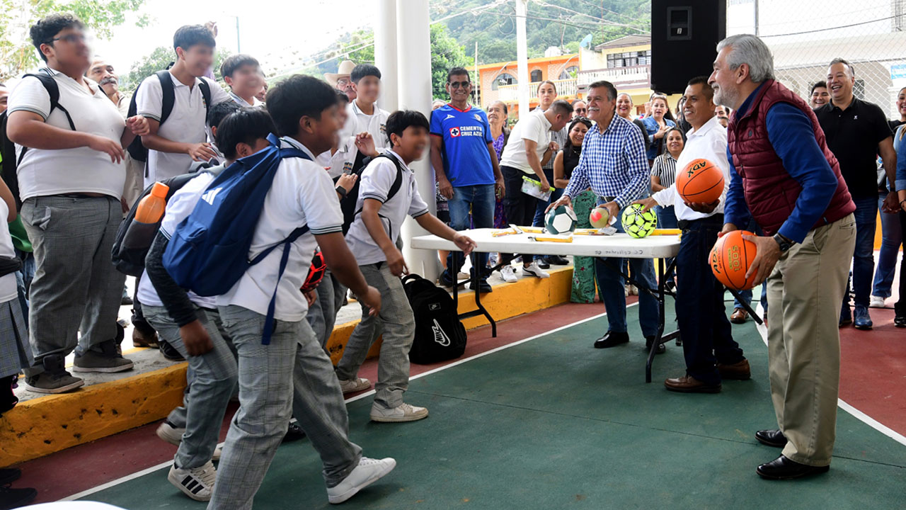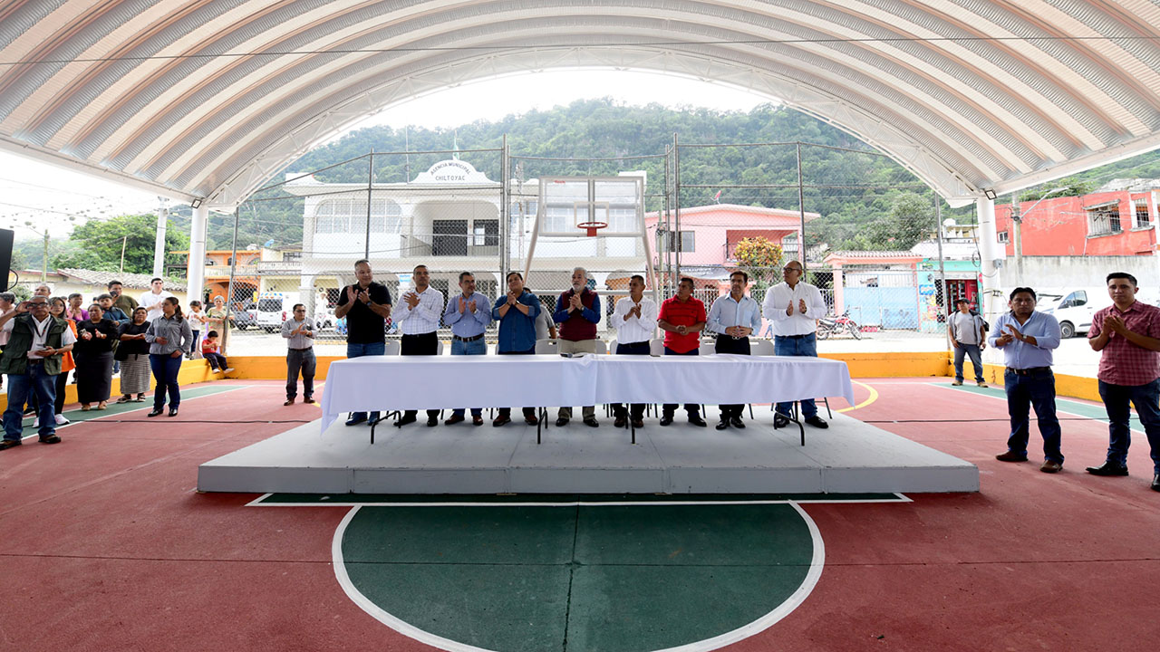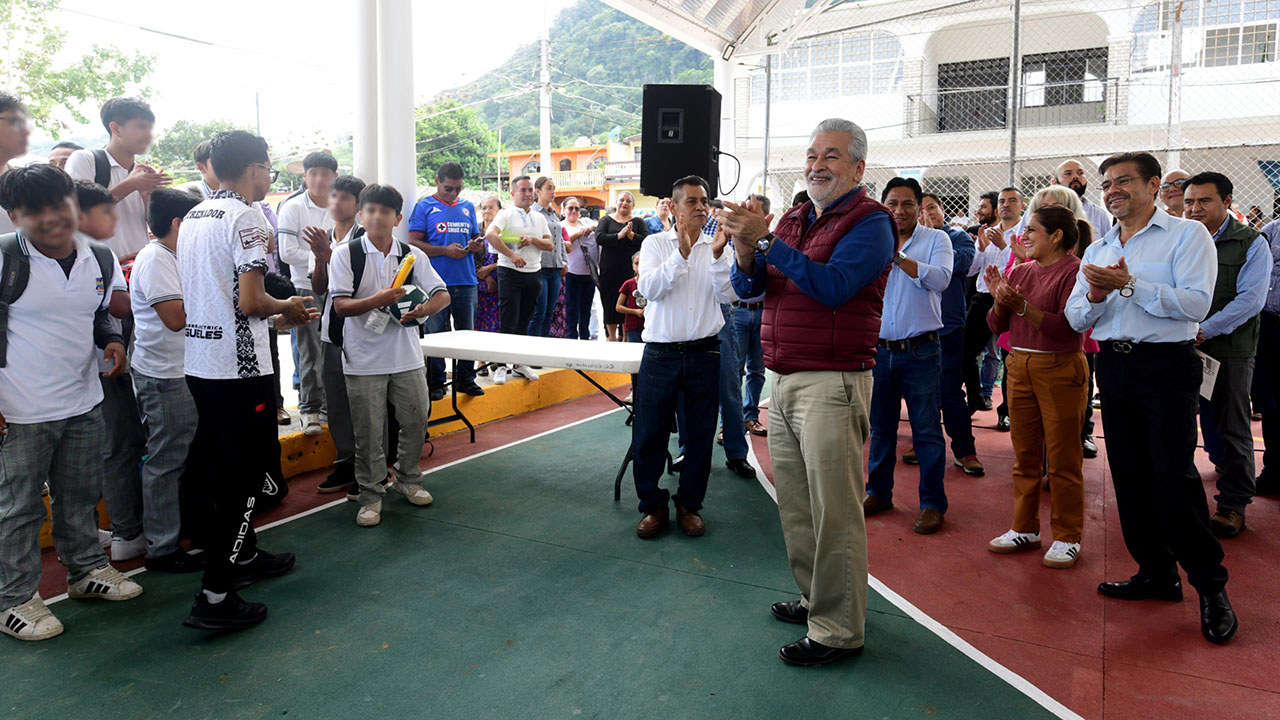 Posteriormente, el Alcalde inauguró el domo ubicado en la explanada central de la congregación, obra realizada con una inversión superior a un millón y medio de pesos, destinada al disfrute de las y los estudiantes, así como de todas las familias que habitan en la localidad.