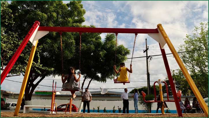 Desde ya, niñas y niños pueden utilizar con total seguridad el área de juegos, pues se recuperaron los columpios y resbaladillas, dotándoles de pintura anticorrosiva y esmaltes especiales para que duren en mejor estado por mayor tiempo.