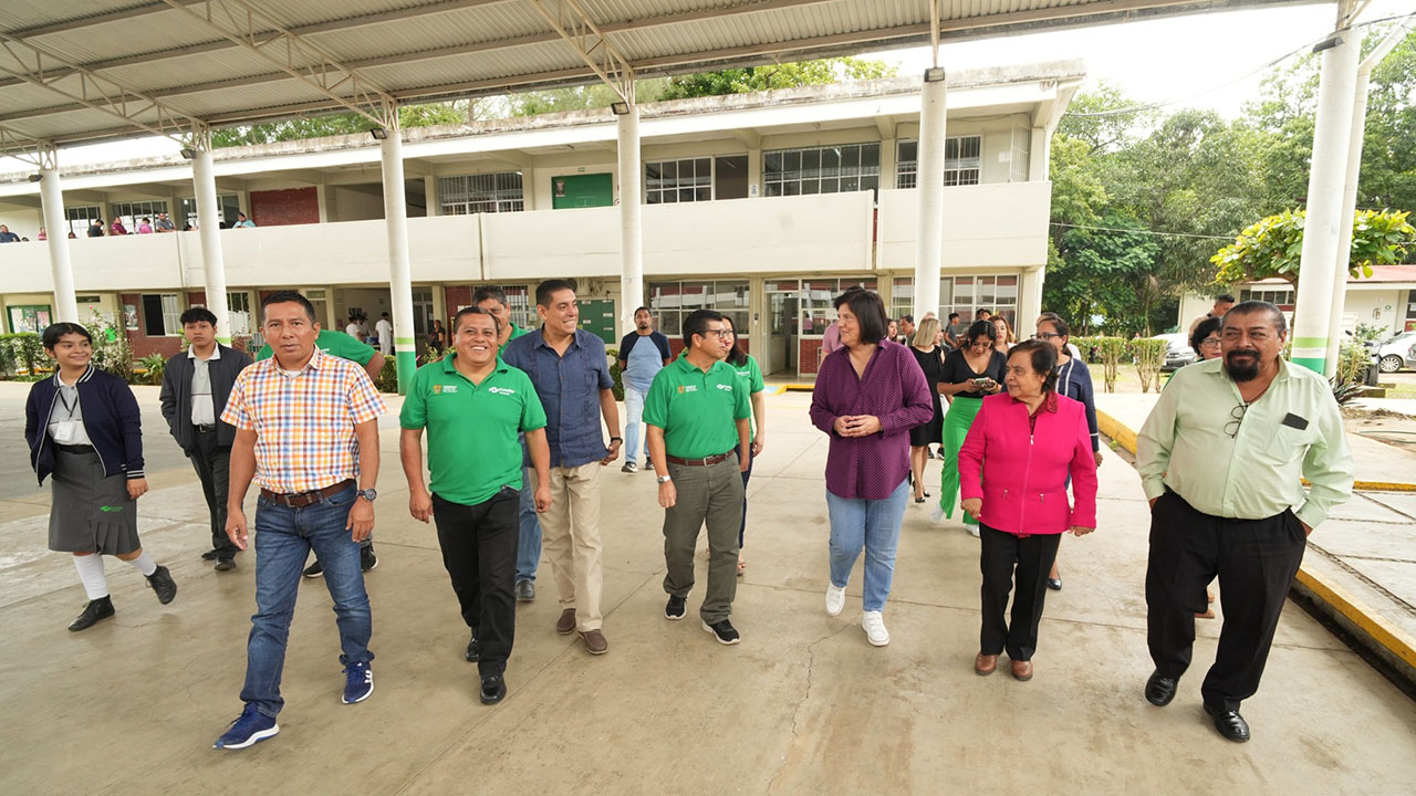 La alcaldesa llegó acompañada de los regidores María Elida Pino Villaseca, Mayra Patricia Xolo Hernández, Edgar Leoncio Antemate Caixba, Edgardo Cecilio Ramírez Sosa, Gabriela Díaz del Castillo Domínguez y Danaé Vazquez Molina, además de la maestra Laura Irene de Jesús Sedas Larios, Directora del Medio Ambiente y como invitado especial, el médico veterinario zootecnista Ricardo Rubio Solana, con quienes recorrió las dos aulas, que se entregaron completamente equipadas, realizadas con una inversión de 1 millón 281 mil 843.24 pesos, en beneficio del Conalep " Dr. Guillermo Figueroa Cárdenas", beneficiando directamente a 60 alumnos.