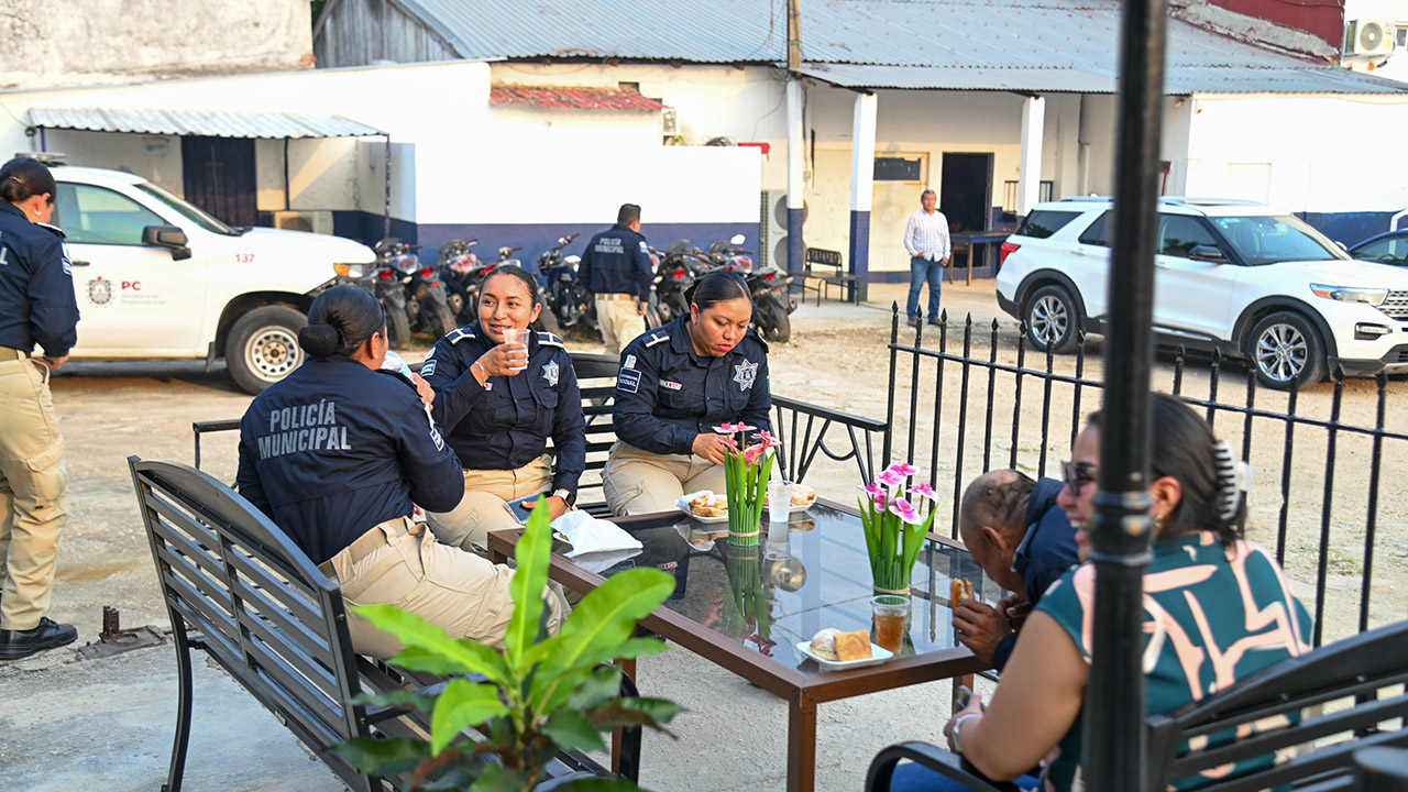 Entre las acciones en infraestructura para el personal está la creación dos aulas de capacitación; la instalación de un ‘Cine Police’; un comedor y dos terrazas para el esparcimiento. También, se integró la unidad de binomios caninos para reforzar los rondines; se crearon 43 redes ciudadanas nuevas y como reconocimiento a los oficiales, se pintó en la base Nido el mural “Evolución”.