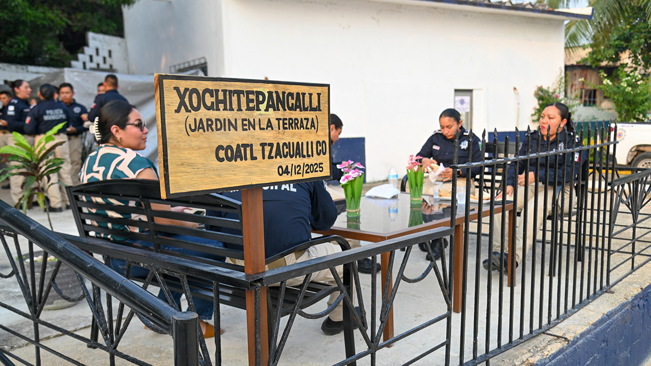 La tarde de este miércoles, las autoridades municipales cortaron el listón inaugural del jardín terraza ‘Xochitepancalli’, cuyo nombre proviene del náhuatl y significa “lugar de flores y protección”. Este espacio fue concebido como un área verde de uso común dentro de las instalaciones, integrado por zonas de descanso y relajación para el personal policial.