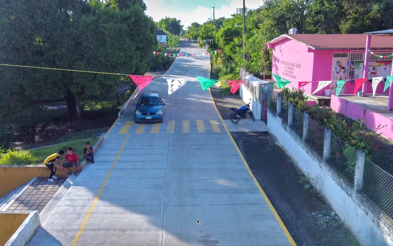 La presidenta municipal Ing. Arantxa Zamitiz Sosa, acompañada del director de Obras Públicas, Ing. Juan José Perez, el síndico Miguel Montero y parte de los agentes municipales, cortaron el listón inaugural de la primer obra de gobierno, con una calle de más de 210 metros de concreto hidráulico en su primer etapa, que beneficia a 403 habitantes de esta comunidad.