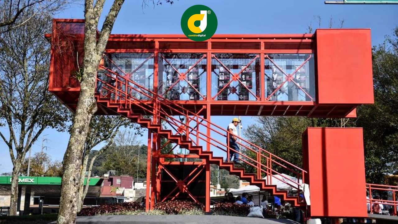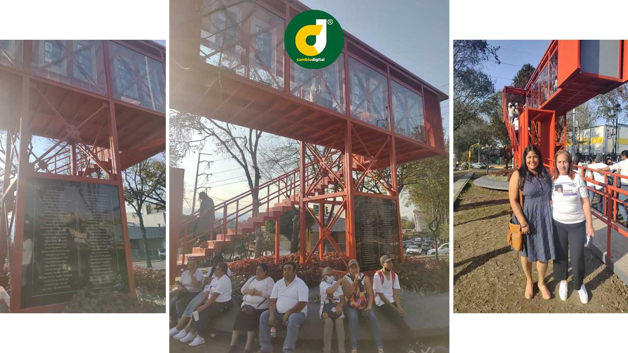 La estructura metálica color rojo, en forma de puente peatonal representa el proceso que deben enfrentar ante un reporte de desaparición, la búsqueda y las dificultades burocráticas a las que se enfrentan las familias que reportar a una persona no localizada, señaló por su parte Victoria Delgadillo Romero, integrante del Colectivo Familiares Enlaces Xalapa.