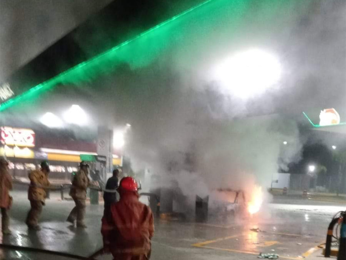 * Trabajadores despachaban a un cliente cuando presuntos delincuentes le prendieron fuego a una bomba despachadora y un vehículo