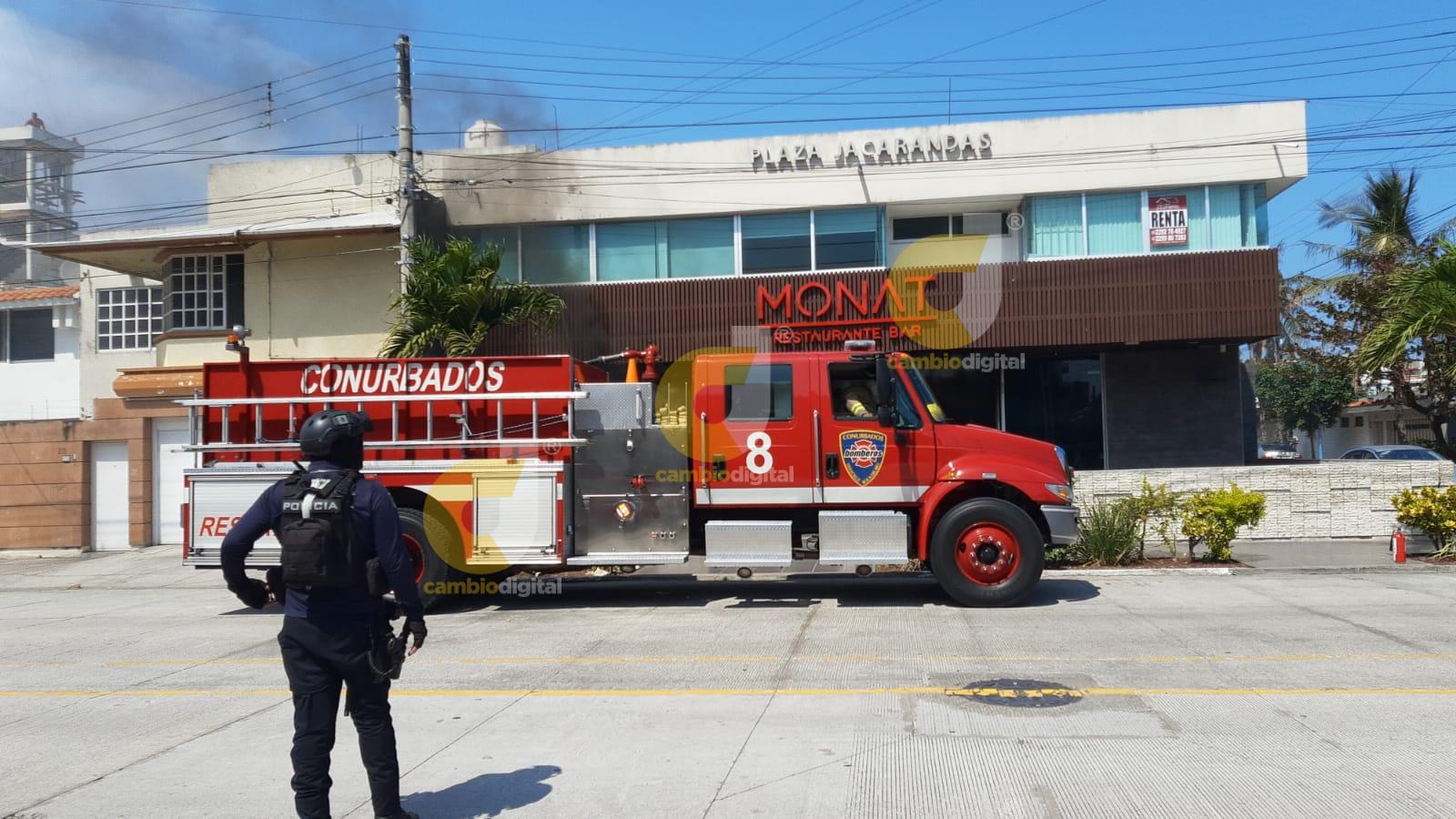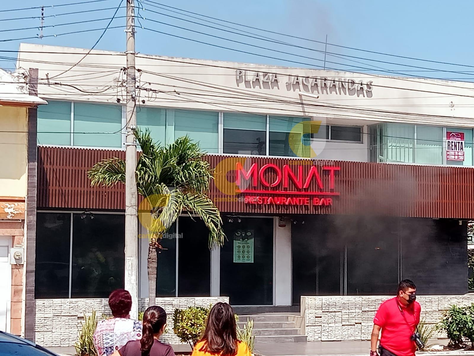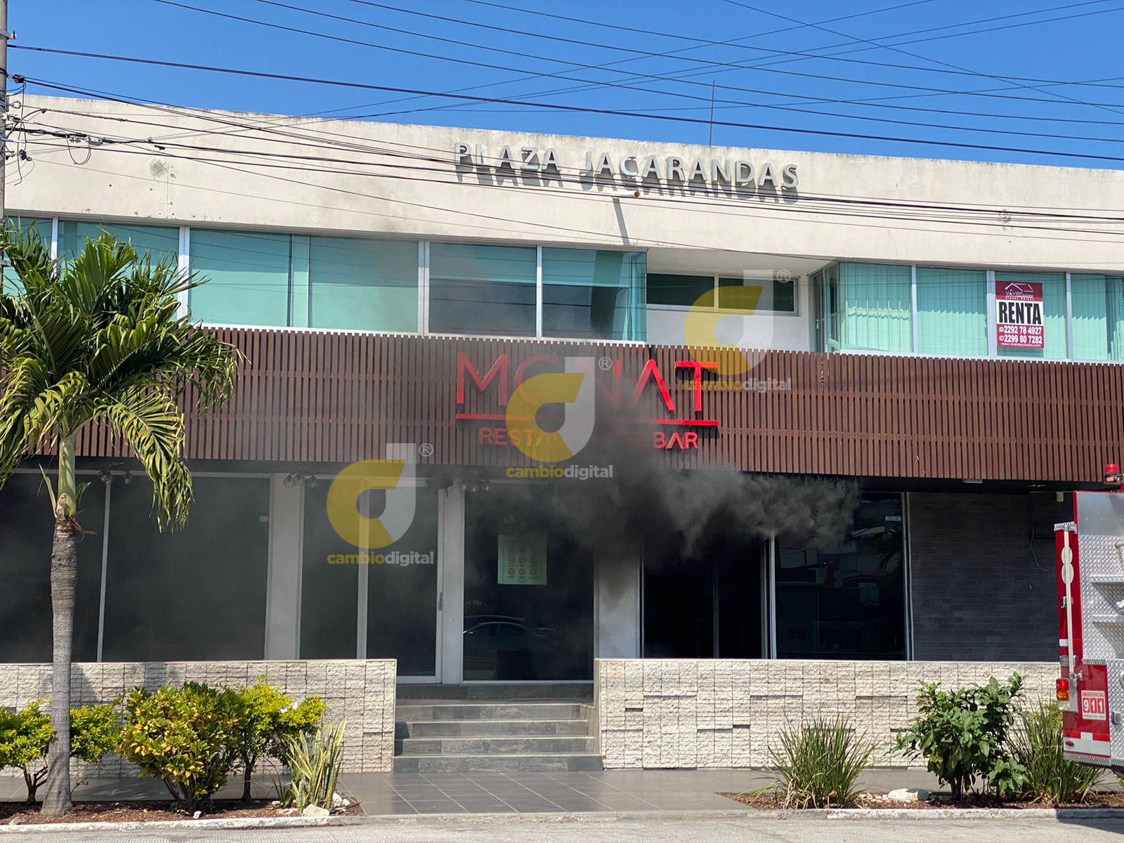 Boca del Río, Ver.- Esta tarde el restaurante Monat de la Plaza Jacarandas en la calle Paseo Jacarandas del fraccionamiento Virginia de Boca del Río se incendió.