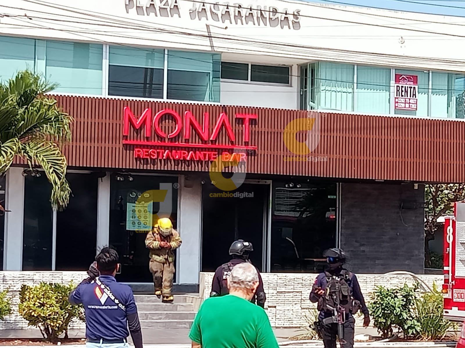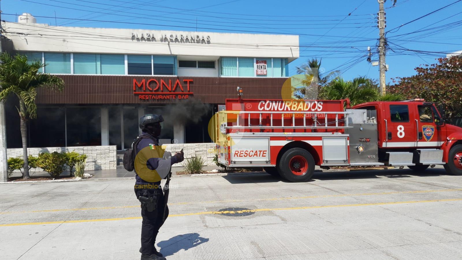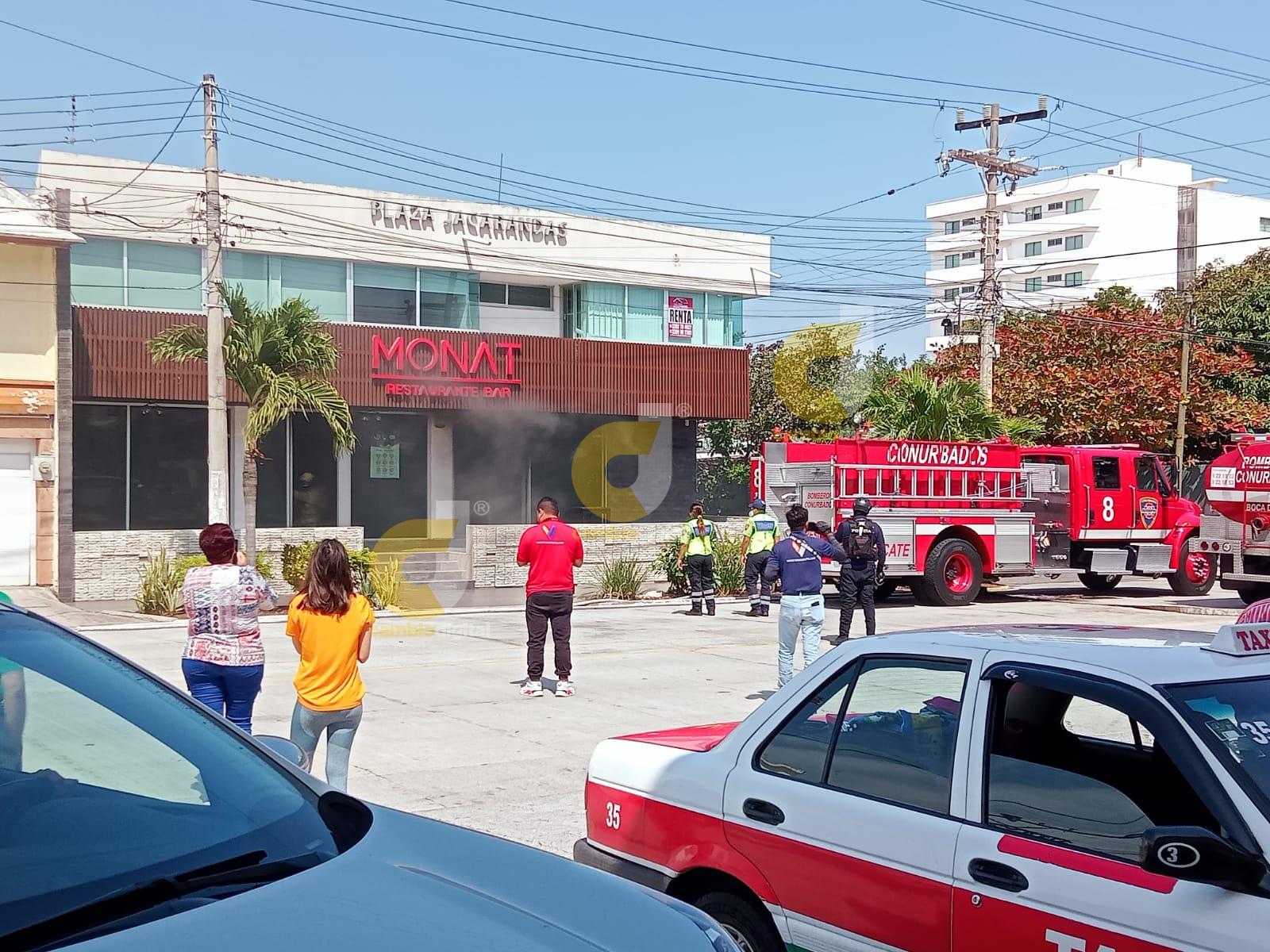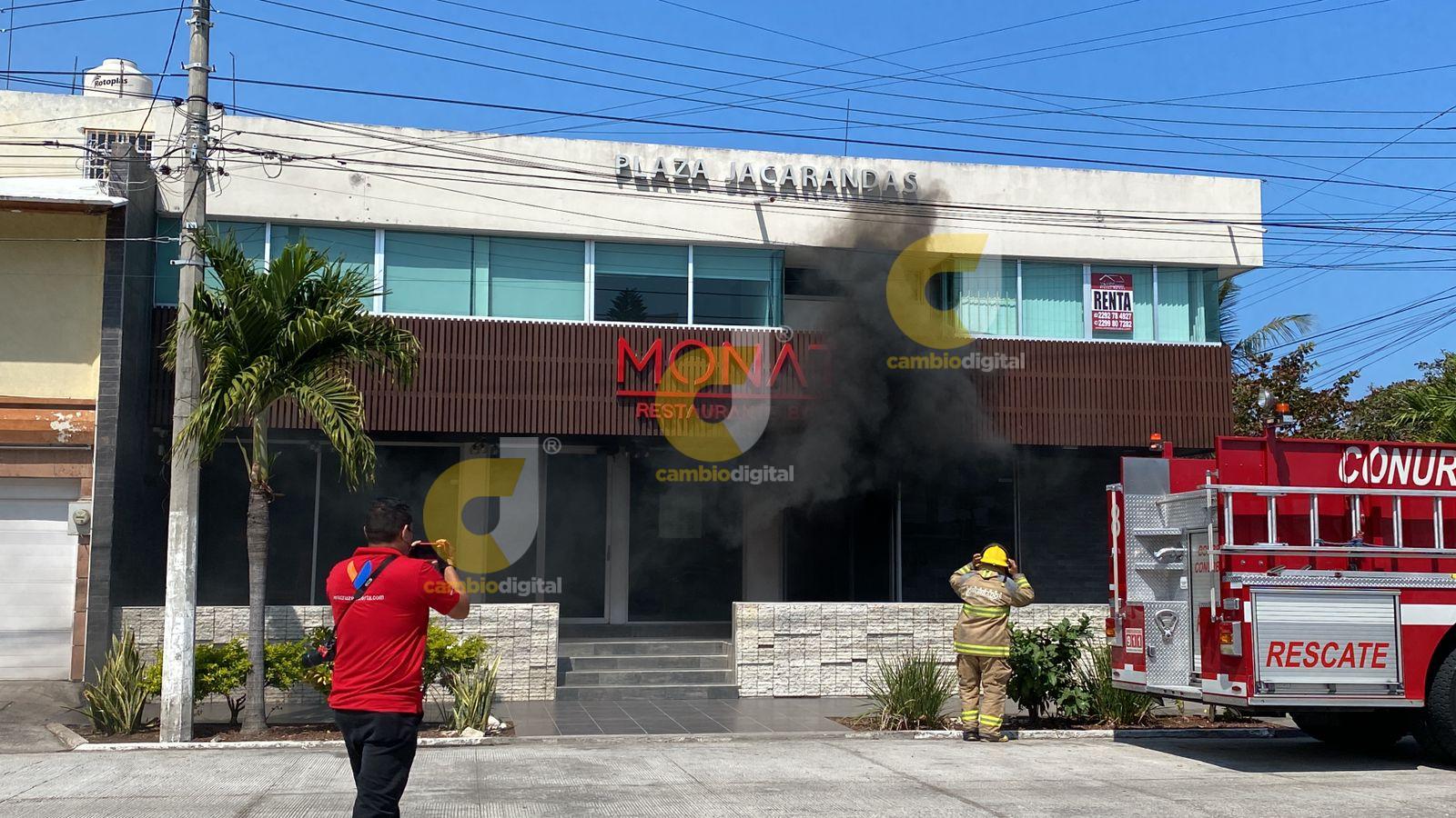 Boca del Río, Ver.- Esta tarde el restaurante Monat de la Plaza Jacarandas en la calle Paseo Jacarandas del fraccionamiento Virginia de Boca del Río se incendió.