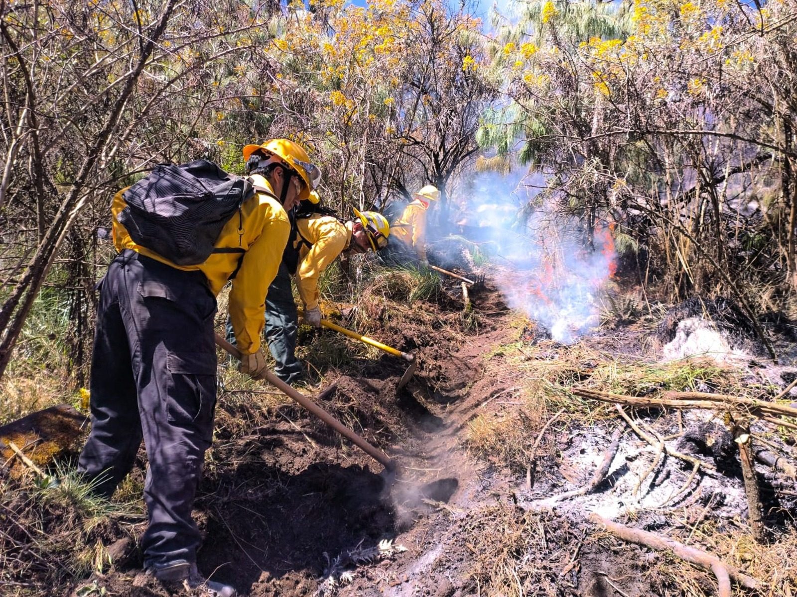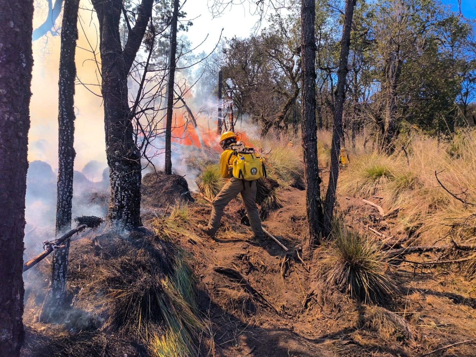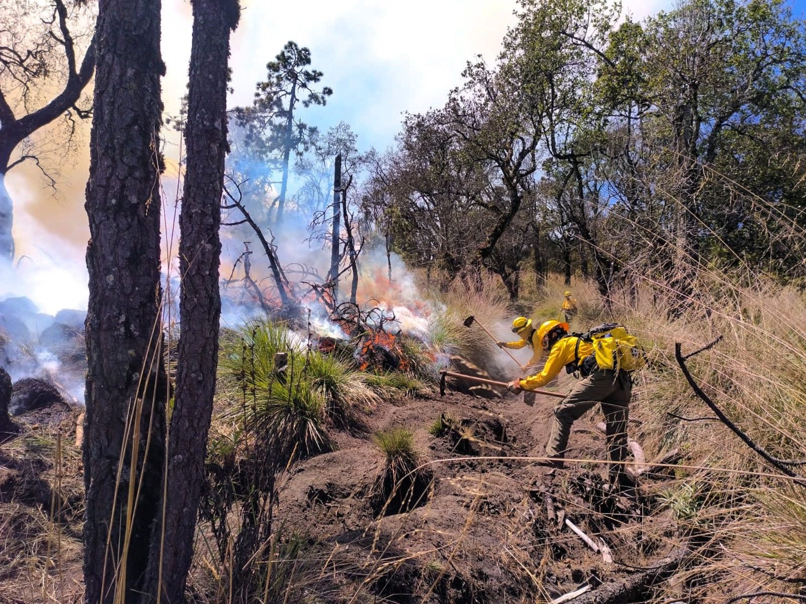 En el Parque Nacional Pico de Orizaba realizan apertura de brechas corta fuego, construcción de zanja trinchera y ataque directo al fuego.