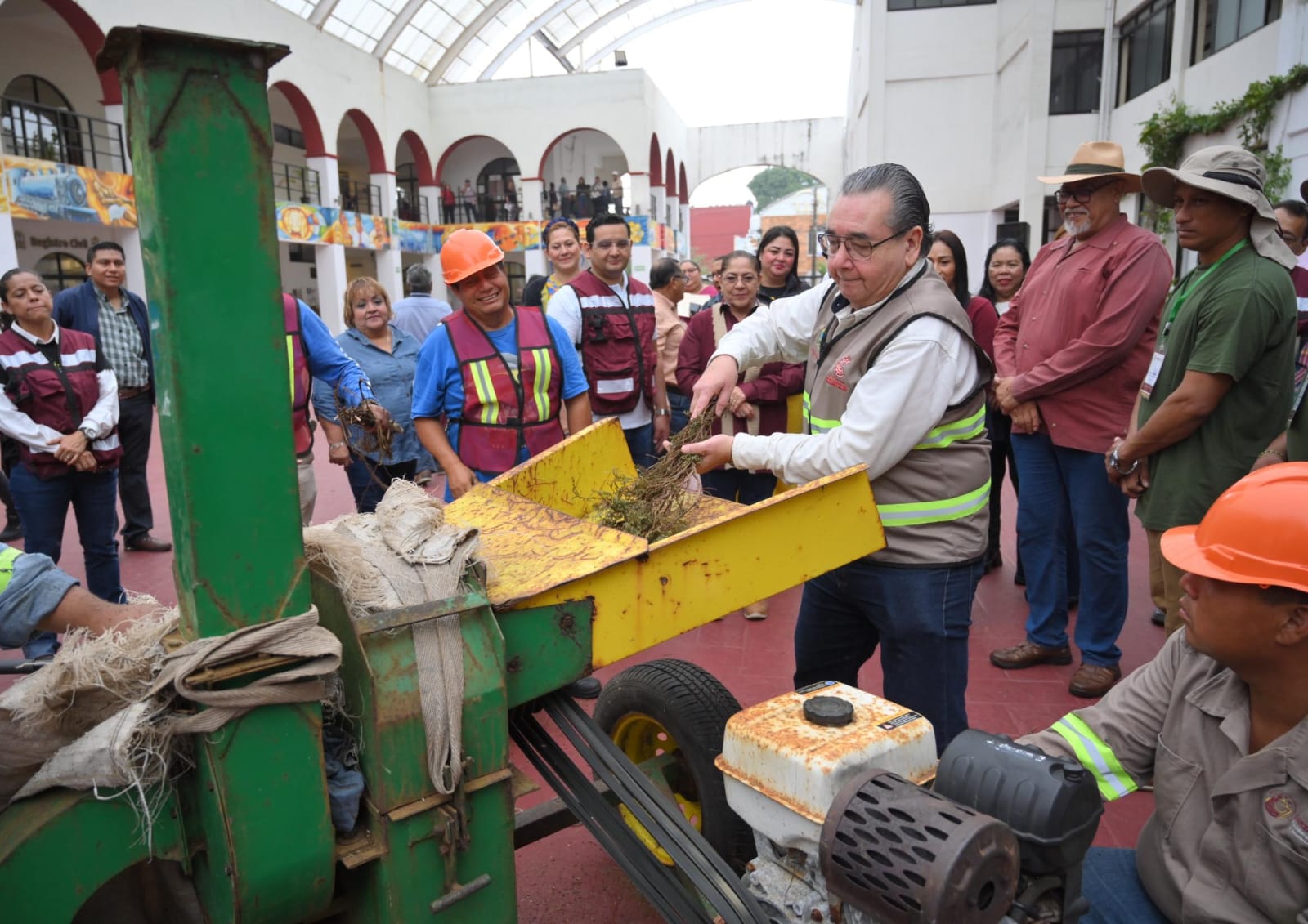 Al finalizar el protocolo, la responsable técnica del Centro de Compostaje, Nancy Ordóñez Jiménez, realizó una demostración en vivo sobre el proceso de trituración y la creación de composta, evidenciando el beneficio inmediato de esta práctica ambiental.