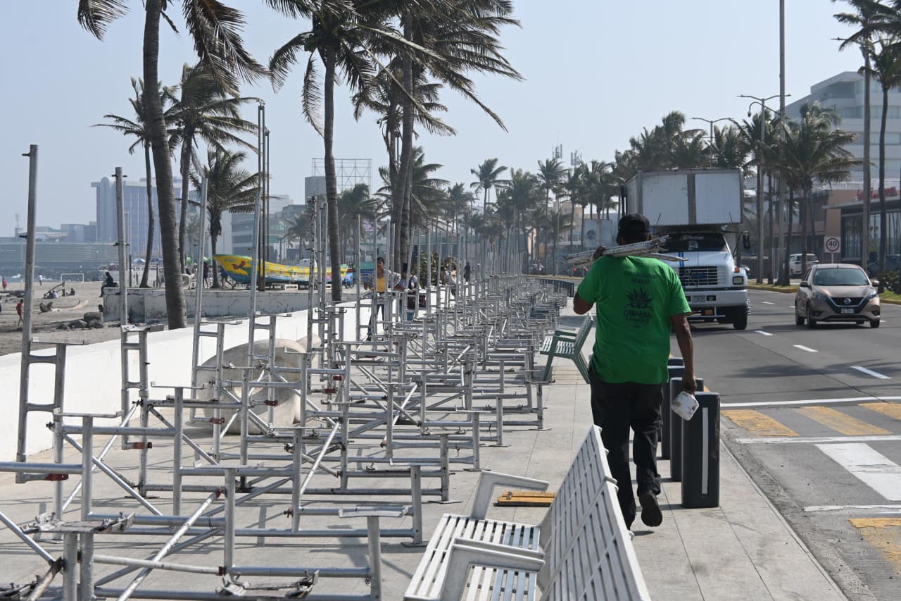 El director de Turismo y Carnaval del H. Ayuntamiento de Veracruz, Daniel Martín Lois, informó que estas labores iniciaron del lado del mar, continuando en el camellón central para cubrir un total de 3.5 kilómetros, y que las gradas estarán listas para la inspección de Protección Civil municipal días antes del primer desfile.