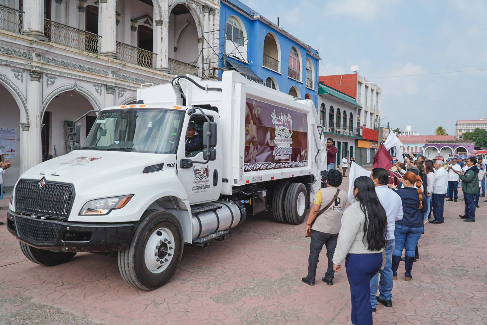 Durante este mismo evento, se realizó el arranque de dos nuevos camiones compactadores recolectores de basura, los cuales se integran al servicio de limpia pública con el objetivo de fortalecer y hacer más eficiente el sistema de recolección de residuos sólidos.