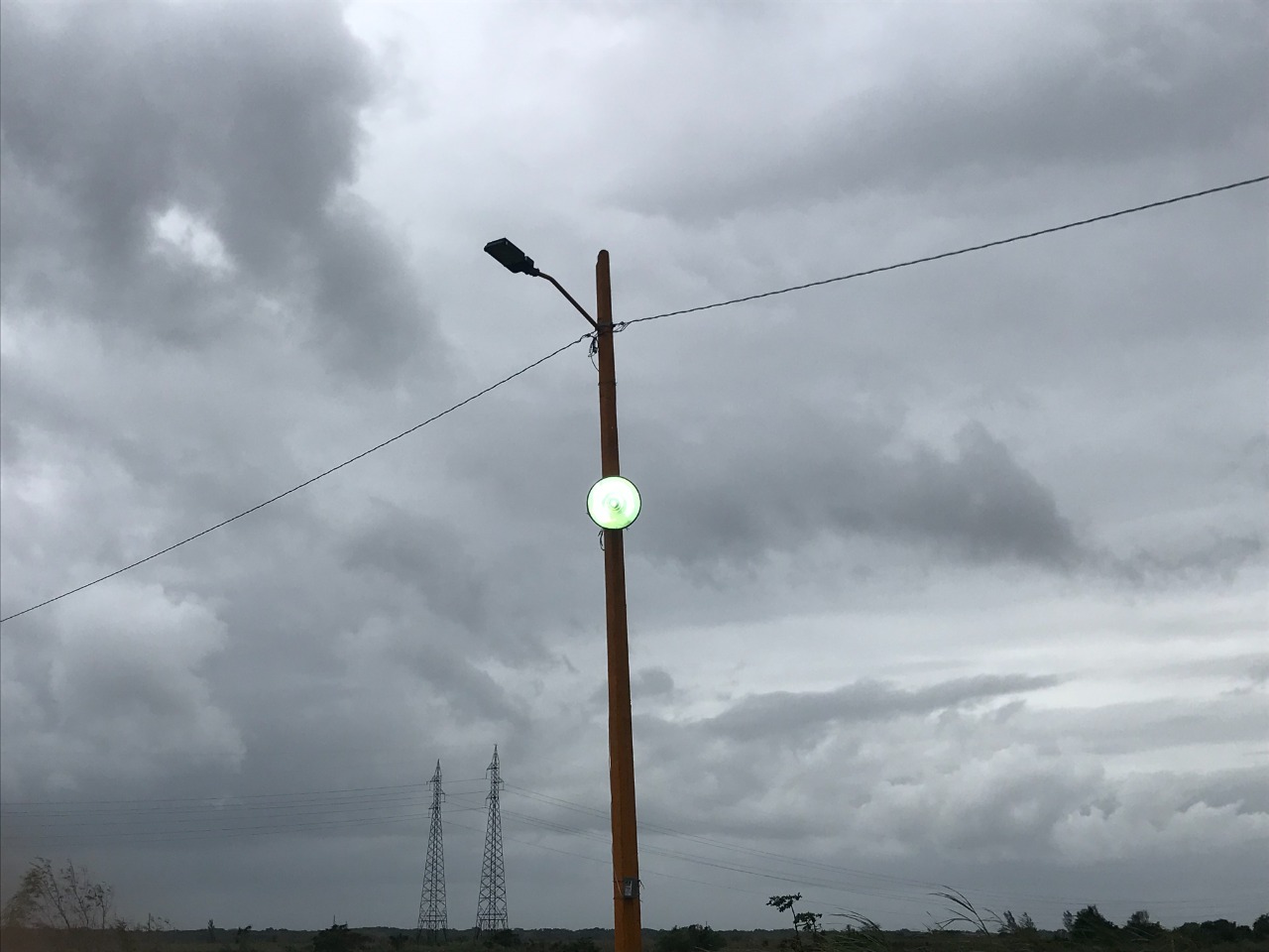 Luego de la llegada de las dos ballenas de concreto, que reforzaron el cerco en el peligroso socavón, hoy los trabajadores de las dependencias arriba mencionadas, procedieron a la colocación de esta luminaria, que hará más visible el punto afectado.