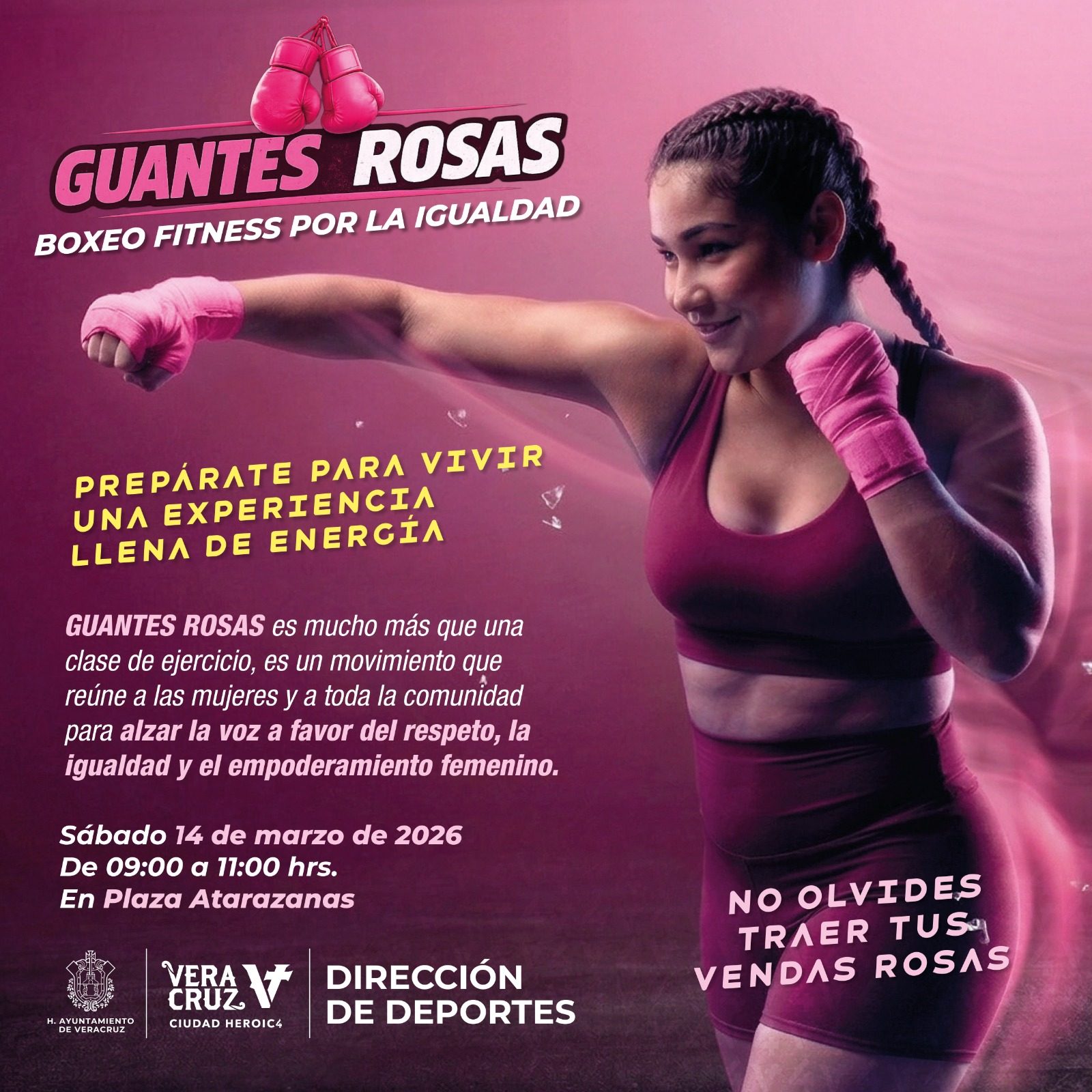 Veracruz, Ver.- El Ayuntamiento de Veracruz invita a la ciudadanía a participar en la jornada deportiva “Guantes Rosas”, que se realizará este sábado 14 de marzo en la Plaza Atarazanas, con el objetivo de promover la activación física, la participación de las mujeres y estilos de vida saludables.