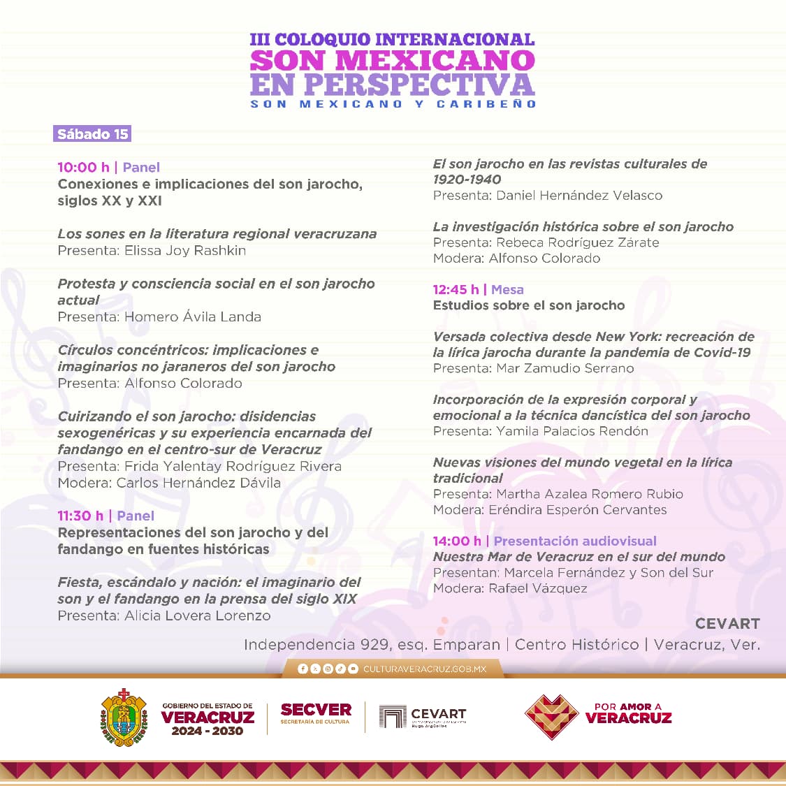 Xalapa, Ver.- La Secretaría de Cultura de Veracruz (SECVER) invita al público a participar en las actividades del III Coloquio Internacional Son mexicano en Perspectiva, que se desarrollan en el Centro Veracruzano de las Artes (CEVART) Hugo Argüelles, en el puerto de Veracruz.