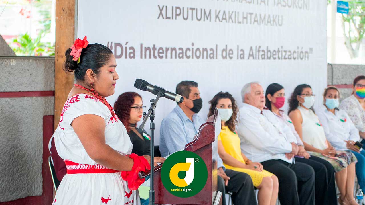 En el marco del evento, la formadora Basilia Cruz Santos, compartió una reseña del Día Internacional de la Alfabetización en lengua totonaca.