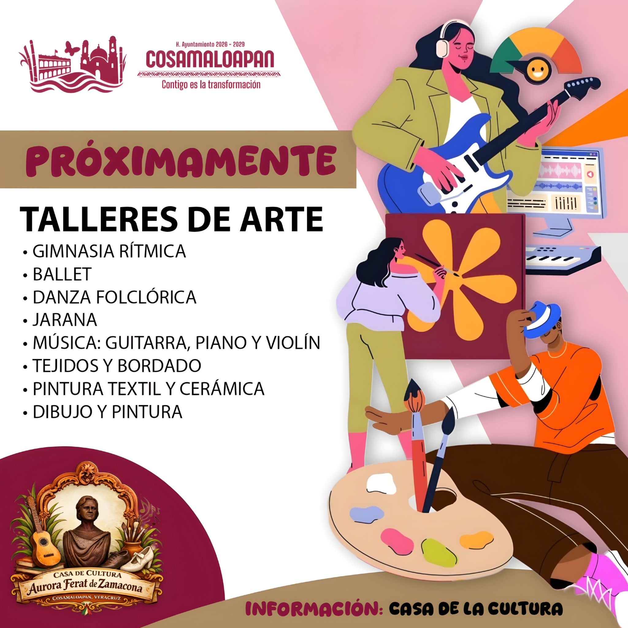 Cosamaloapan, Ver.- La Casa de la Cultura de Cosamaloapan “Aurora Ferat de Zamacona” se encuentra próxima a aperturar sus talleres de arte, espacios pensados para impulsar la creatividad, el talento y la expresión cultural.