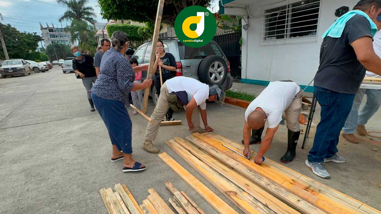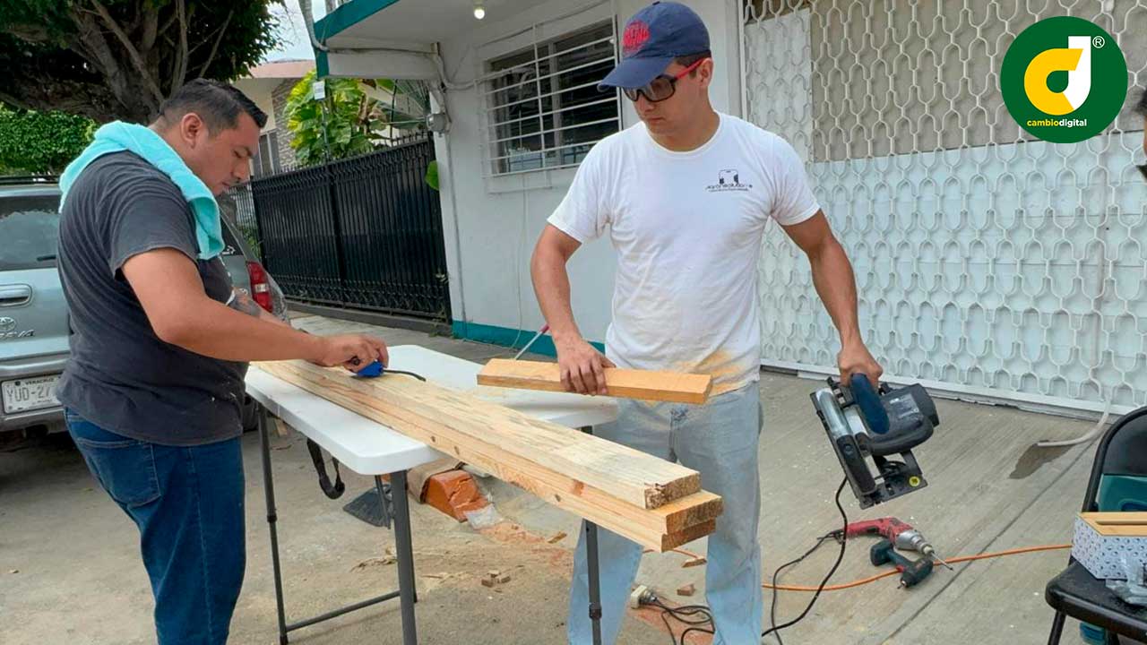 Pero ese trabajo lo ha hecho a un lado por ahora, para fabricar los escurridores con los que las familias sacan el agua y lodo de sus casas.