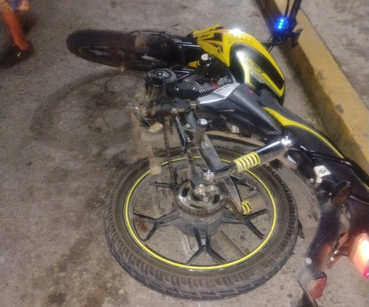 El joven no alcanzó a ver la cuerda, se atoró en ella, la moto derrapó y él salió proyectado varios metros.