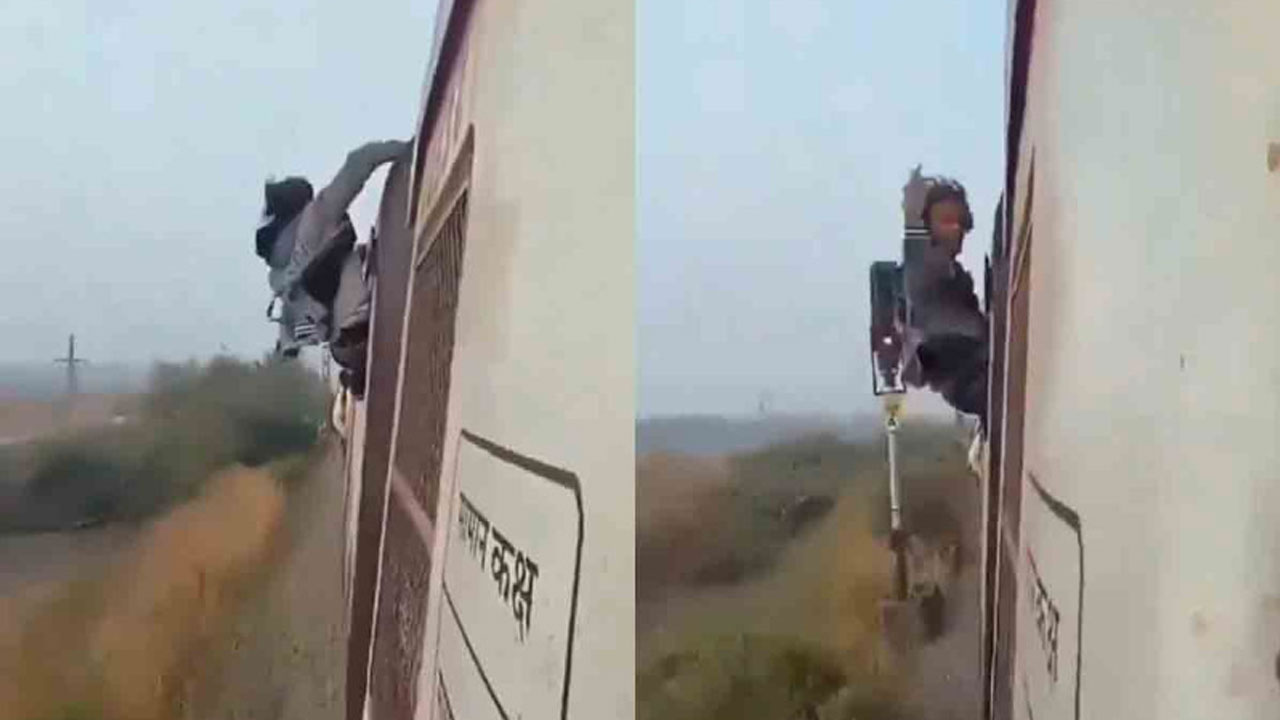 🇮🇳 En la India, un joven desafía su suerte practicando un tipo de surf en un tren, y ocurre algo "inesperado". pic.twitter.com/wWbPgvUDmm