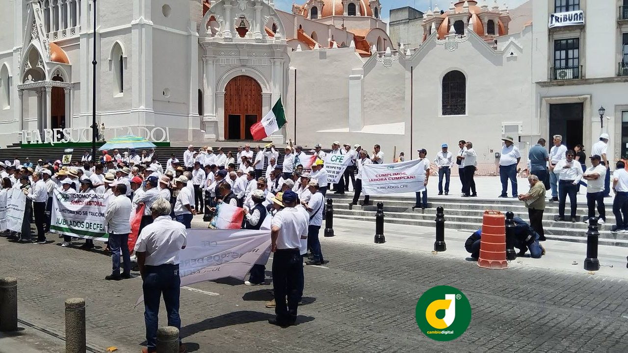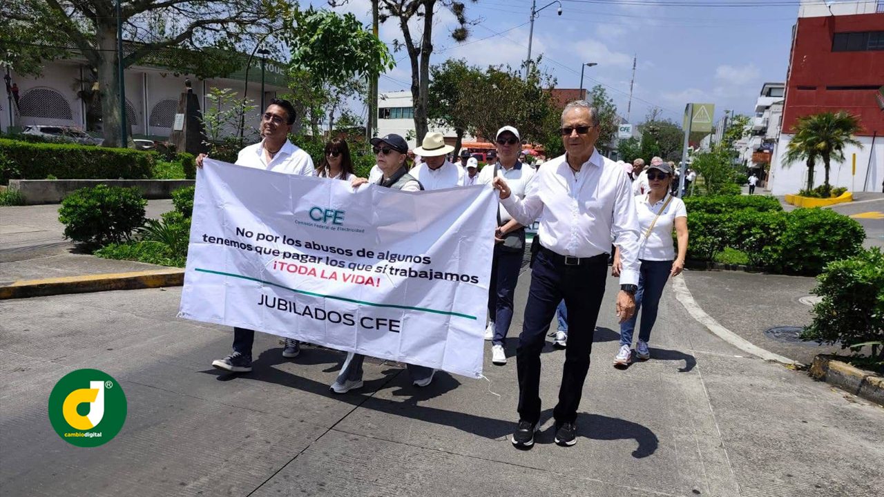 Veracruz.- Tras considerar que se está vulnerando el estado de derecho y afectando el patrimonio de sus familias, jubilados y pensionados de Petróleos Mexicanos y la Comisión Federal de Electricidad, se manifestaron este miércoles en Xalapa, para demandar marcha atrás a la reforma al artículo 127 Constitucional.