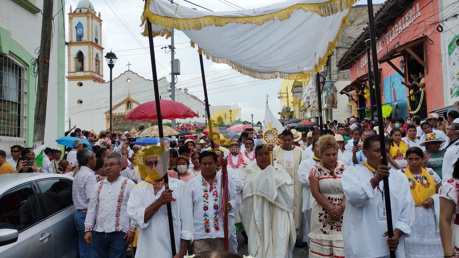 Los danzantes portaron vestimentas en colores blanco y amarillo, miles de feligreses acompañaron al santísimo durante la magna procesión, siendo una mezcla entre la religiosidad y lo sagrado, llenando de magia y colorido las calles por donde pasó la procesión que concluyó en la Catedral de nuestra Señora de la Asunción, en medio de un ambiente de fe y amor a Jesucristo, ahí el obispo José Trinidad Zapata Ortiz, señaló “el día de hoy realizamos una magna celebración, la que se impone por sí misma gracias a la fe, la tradición y la cultura del pueblo de Papantla, donde se conjugan todas las expresiones culturales y religiosas y tienen arraigo para las nuevas generaciones.