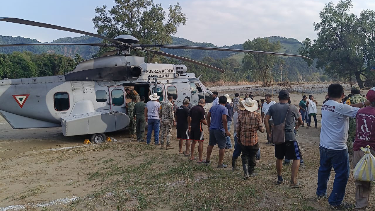 Asimismo, expresó su agradecimiento a la Secretaría de la Defensa Nacional, al Ejército Mexicano y a la Secretaría de Marina, por su participación activa en las labores de apoyo, especialmente a través del puente aéreo de 19 helicópteros que ha permitido trasladar víveres y ayuda humanitaria a las comunidades serranas.