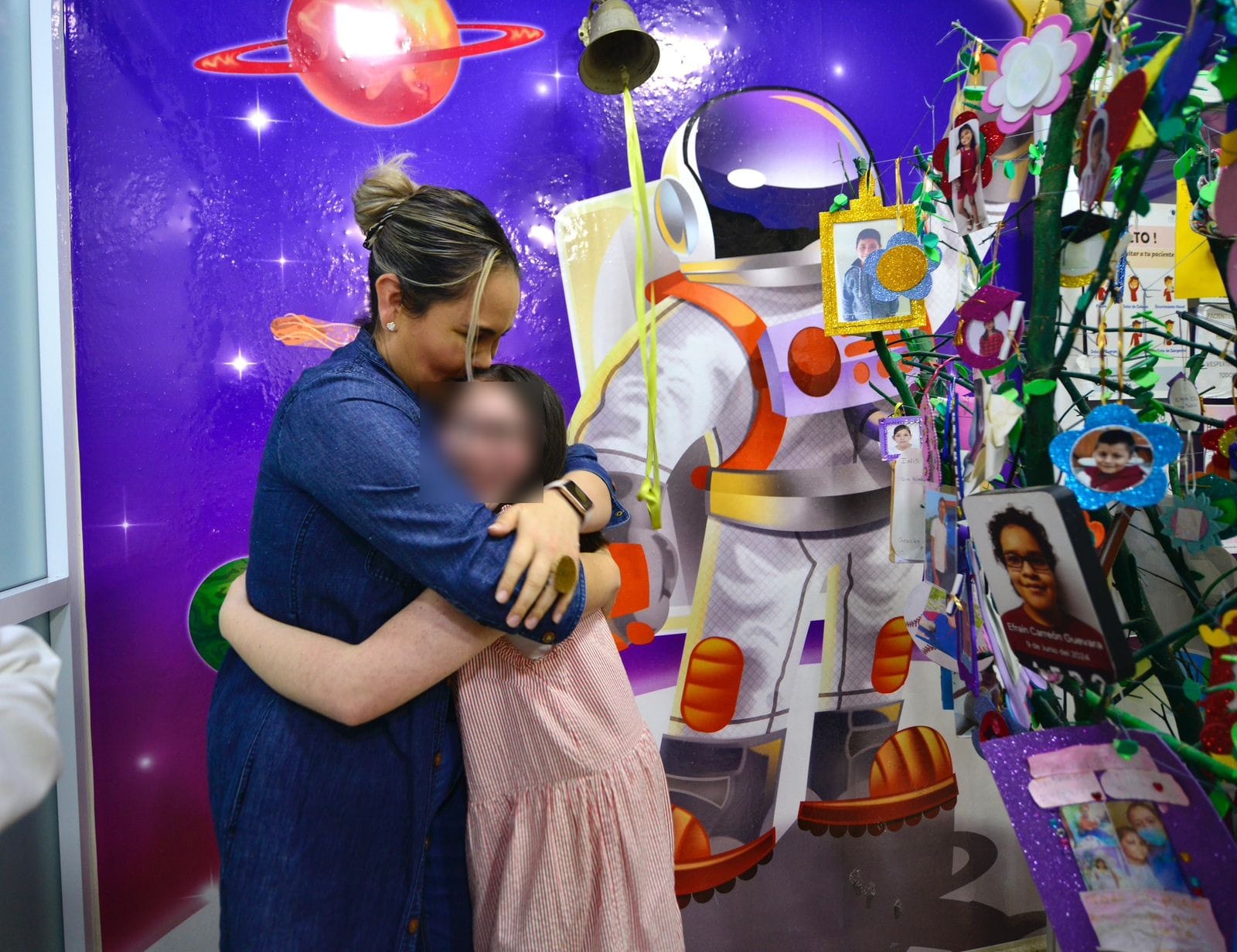 Antes de colocar su foto en el árbol de la vida, acto que simboliza un nuevo comienzo para los pacientes que superan este padecimiento, Karla Fernanda agradeció al equipo de profesionales que estuvo siempre a su lado: “Gracias a ellos sigo viva”.