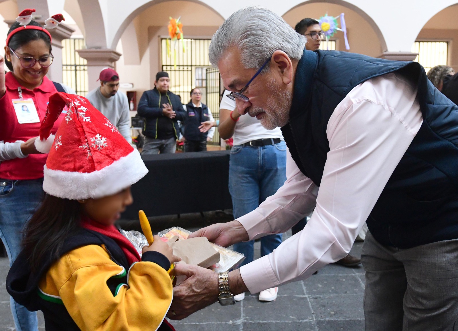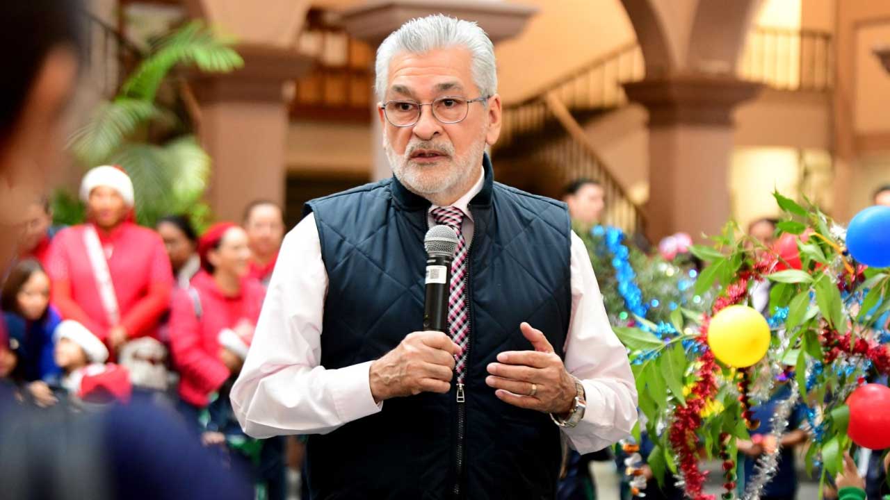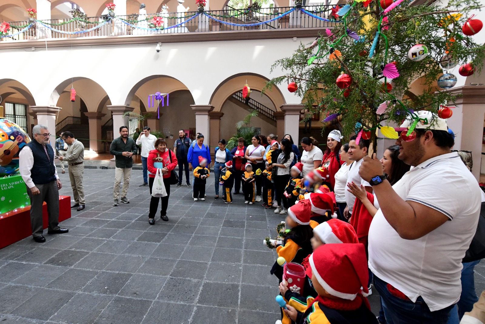 Xalapa, Ver.- Para difundir y conservar las tradiciones decembrinas, este lunes el presidente municipal Alberto Islas Reyes recibió a alumnas y alumnos de los jardines de niños “Gertrudis Guevara de Vite”, “Bertha Von Glumer” y el Centro de Atención Múltiple “Roberto Solís Quiroga”, quienes le cantaron “La Rama” en el patio central de Palacio Municipal.