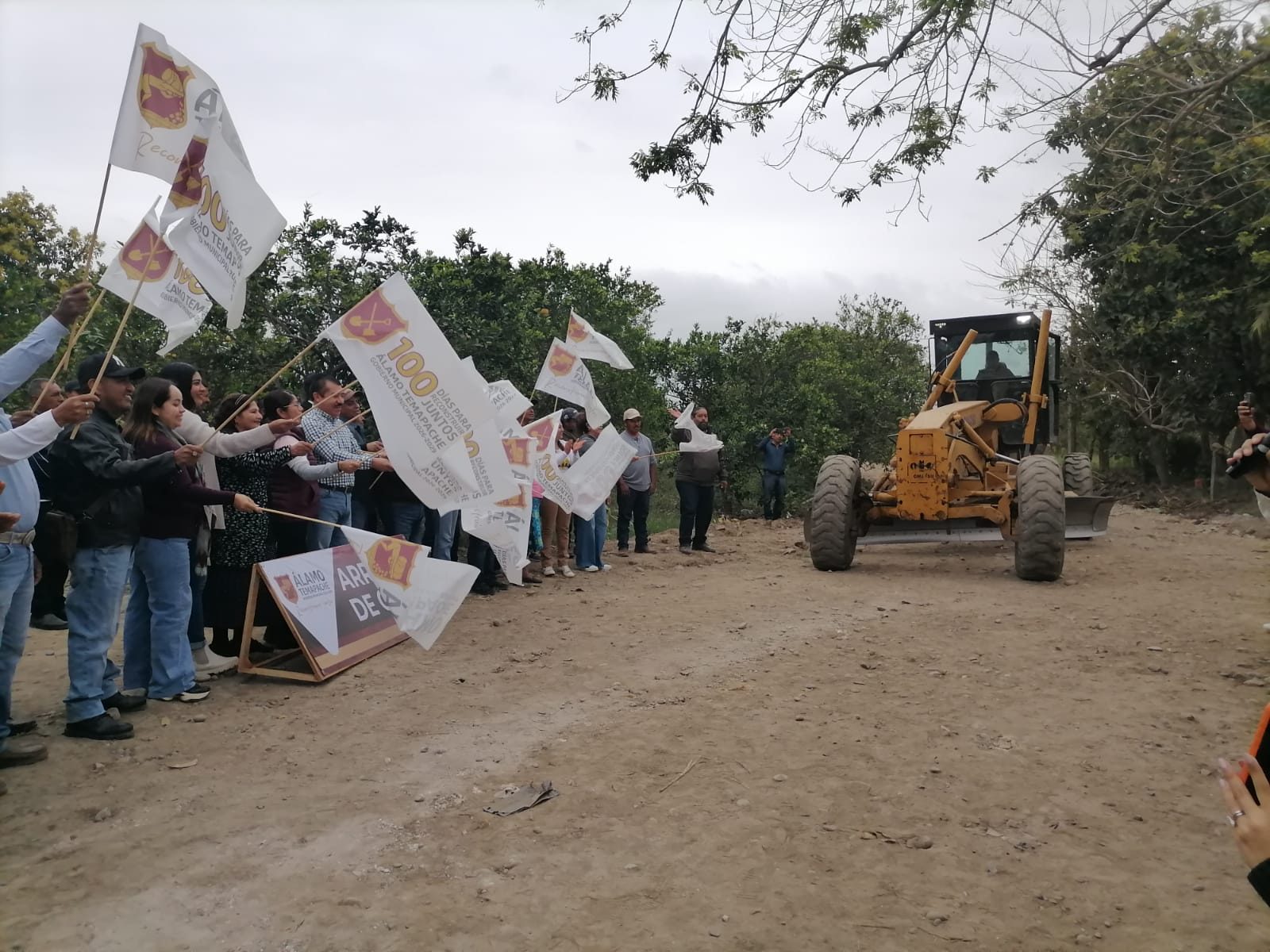 Álamo, Ver.- En un arduo lunes de trabajo, el alcalde Pepe Arenas no sólo brindó atención ciudadana durante todo el día en Palacio Municipal sino, además, por la tarde y noche se dio tiempo para dar dos importantes banderazos: El primero en la localidad Hidalgo Amajac, donde arrancaron los trabajos para la rehabilitación de caminos del cuarto frente, y el segundo en la ciudad, para encender el alumbrado público de la avenida Garizurieta.