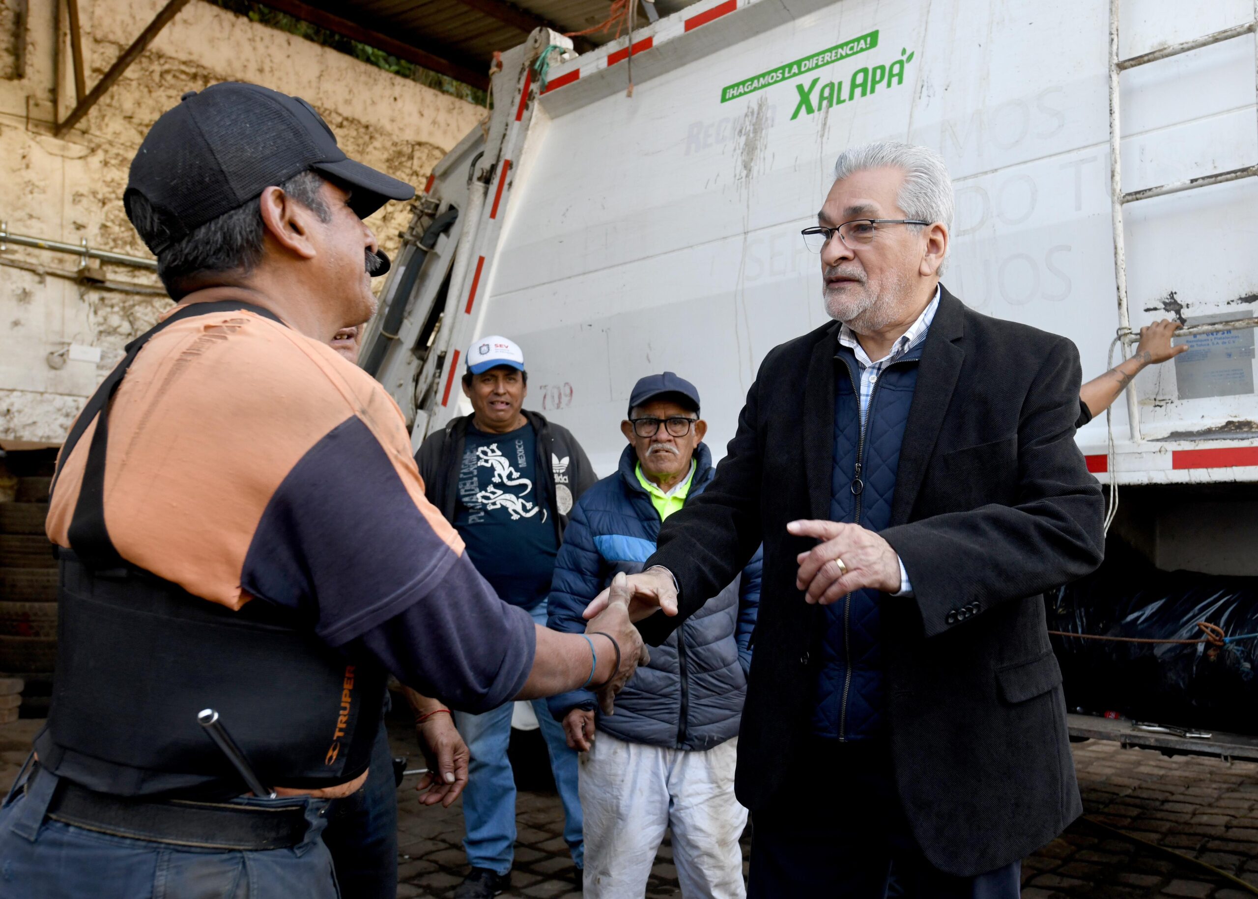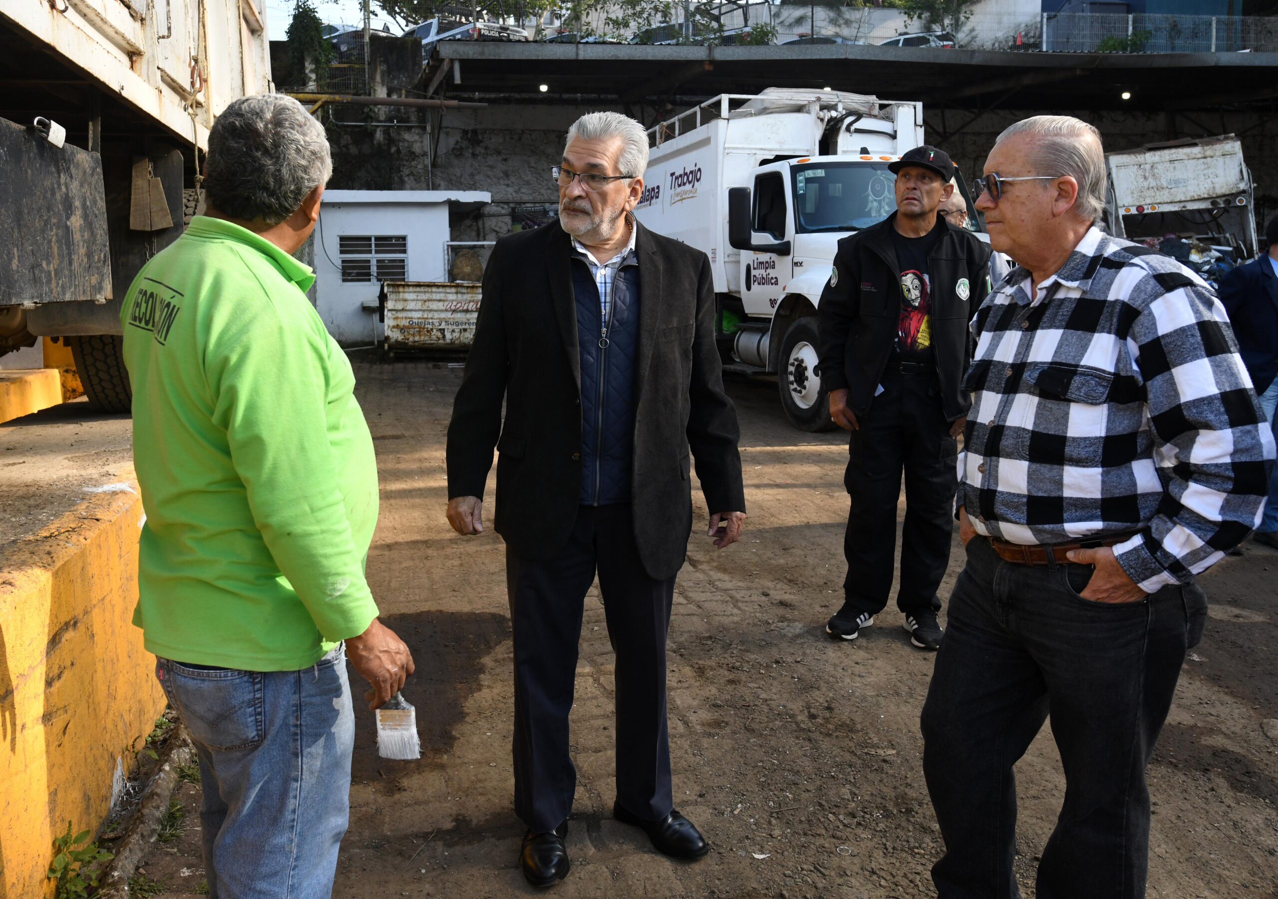 Acompañado por los regidores Carlos Ortega Murguía y Martín Victoriano Espinoza Roldán, el edil reconoció la labor que realiza el personal operativo, de barrido, recolección, talleres y administrativo, pues su trabajo es fundamental para que Xalapa se conserve limpia y con buena imagen urbana.