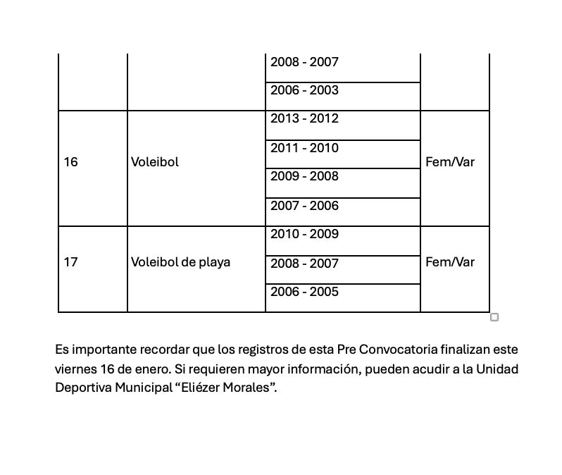 Además, tendrá presencia con el Handball, Natación, Taekwondo, Tenis, Tenis de mesa, Triatlón, Voleibol de sala, Voleibol de playa, entre otras, por lo cual, exhortan a las personas interesadas en participar para que se acerquen a las oficinas del Comude y obtener información detalladda y despejar cualquier duda.