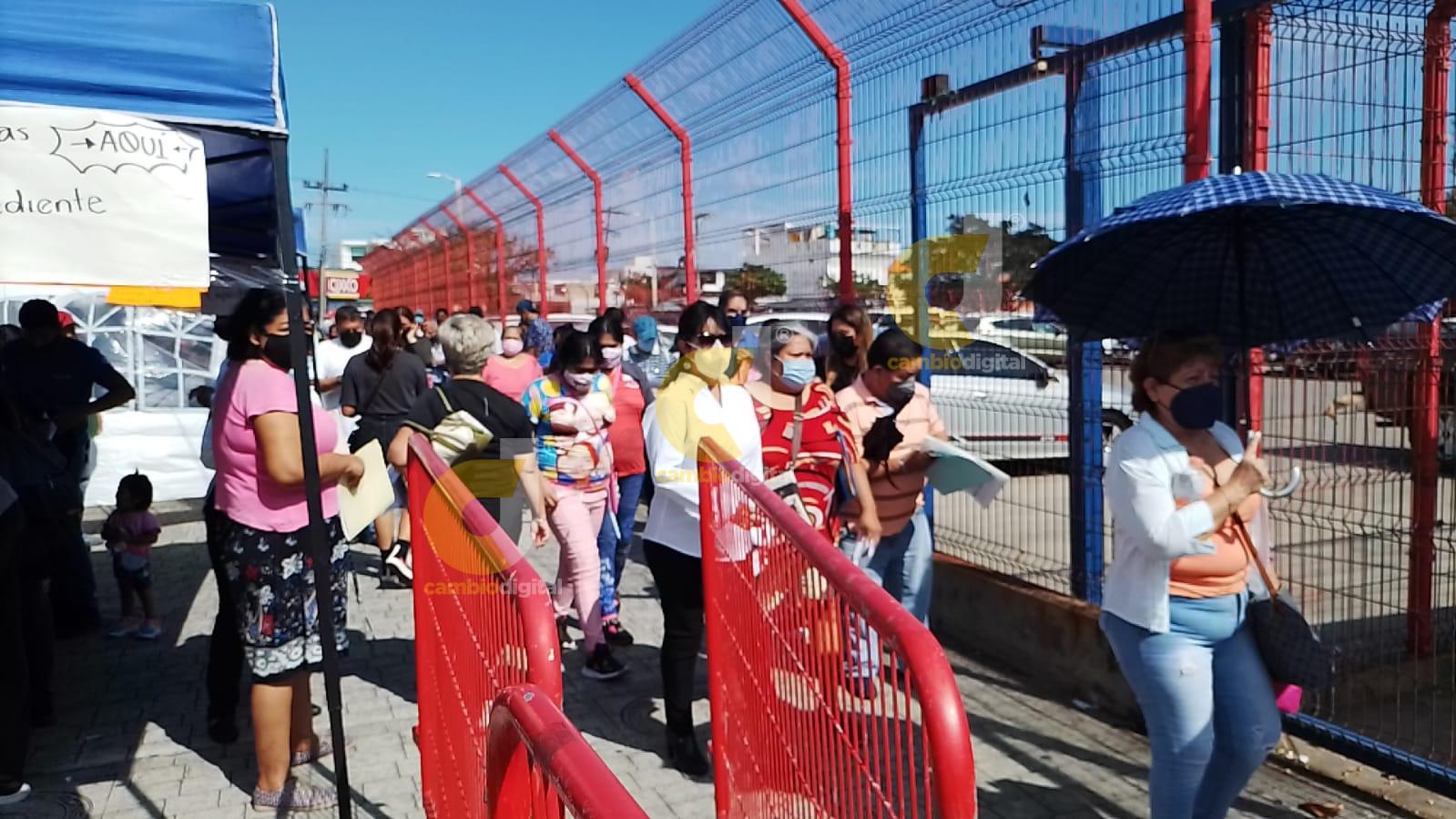 Boca del Río, Ver. – Largas filas se observan en las diferentes sedes durante este primer día de la vacunación de refuerzo contra el Covid-19 en el segmento de 40 a 59 años en el municipio de Veracruz.