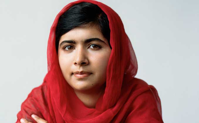 Malala Yousafzai, activista paquistaní por los derechos educativos de las niñas.